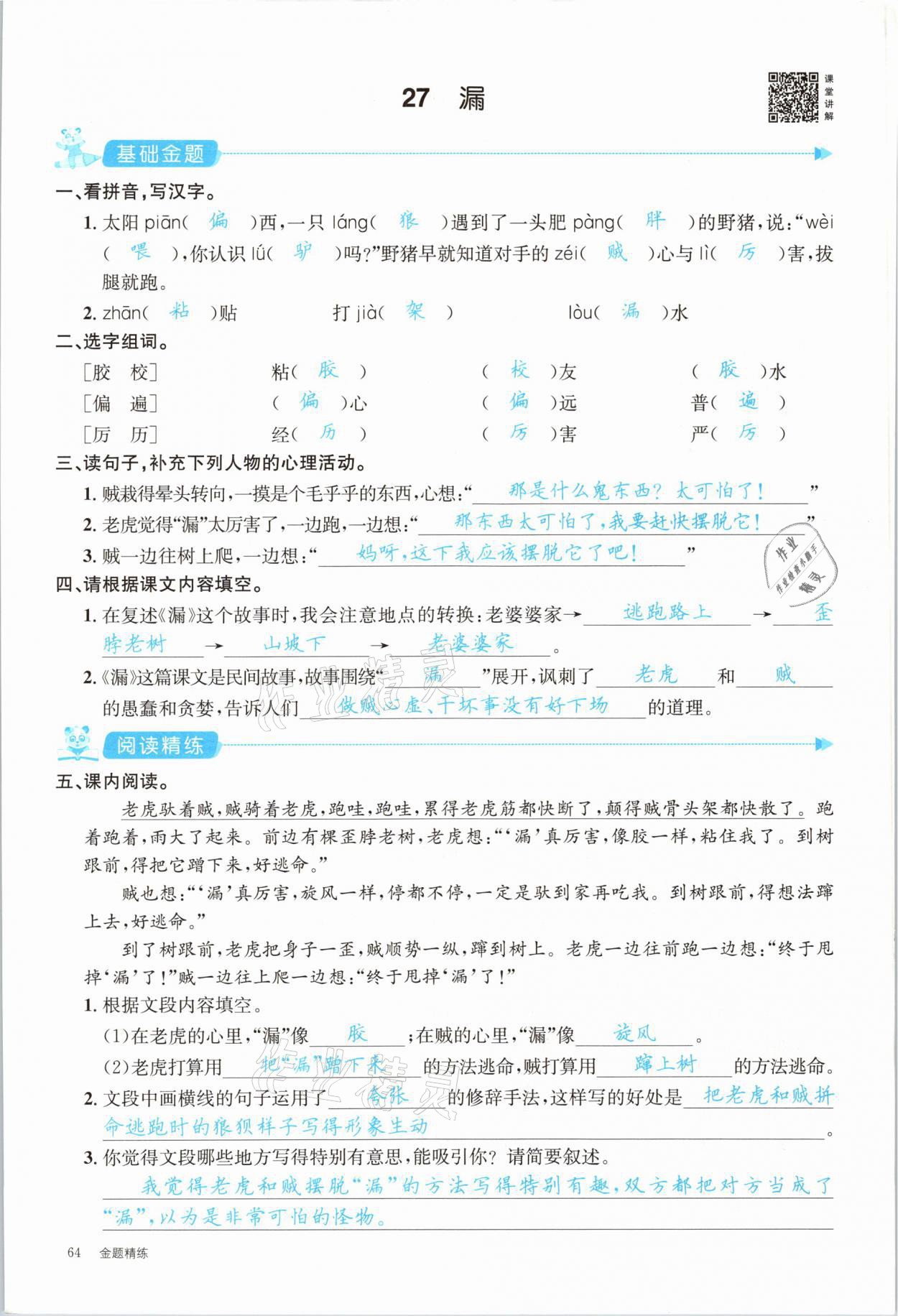 注:目前有些书本章节名称可能整理的还不是很完善,但都是按照顺序排列的,请同学们按照顺序仔细查找。练习册 2021年合力语文金题精练三年级下册人教版 答案主要是用来给同学们做完题方便对答案用的,请勿直接抄袭。