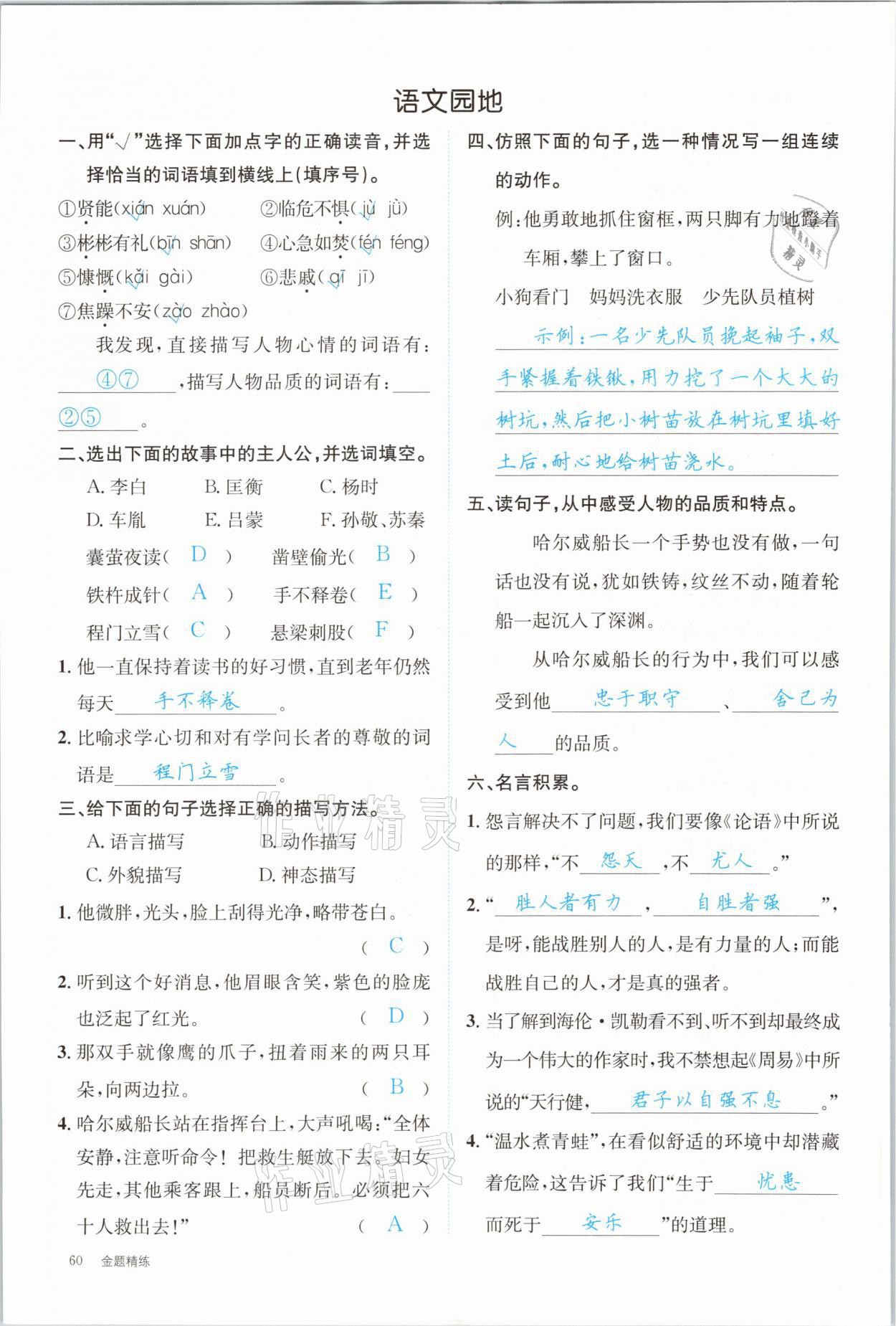 注:目前有些书本章节名称可能整理的还不是很完善,但都是按照顺序排列的,请同学们按照顺序仔细查找。练习册 2021年合力语文金题精练四年级下册人教版 答案主要是用来给同学们做完题方便对答案用的,请勿直接抄袭。