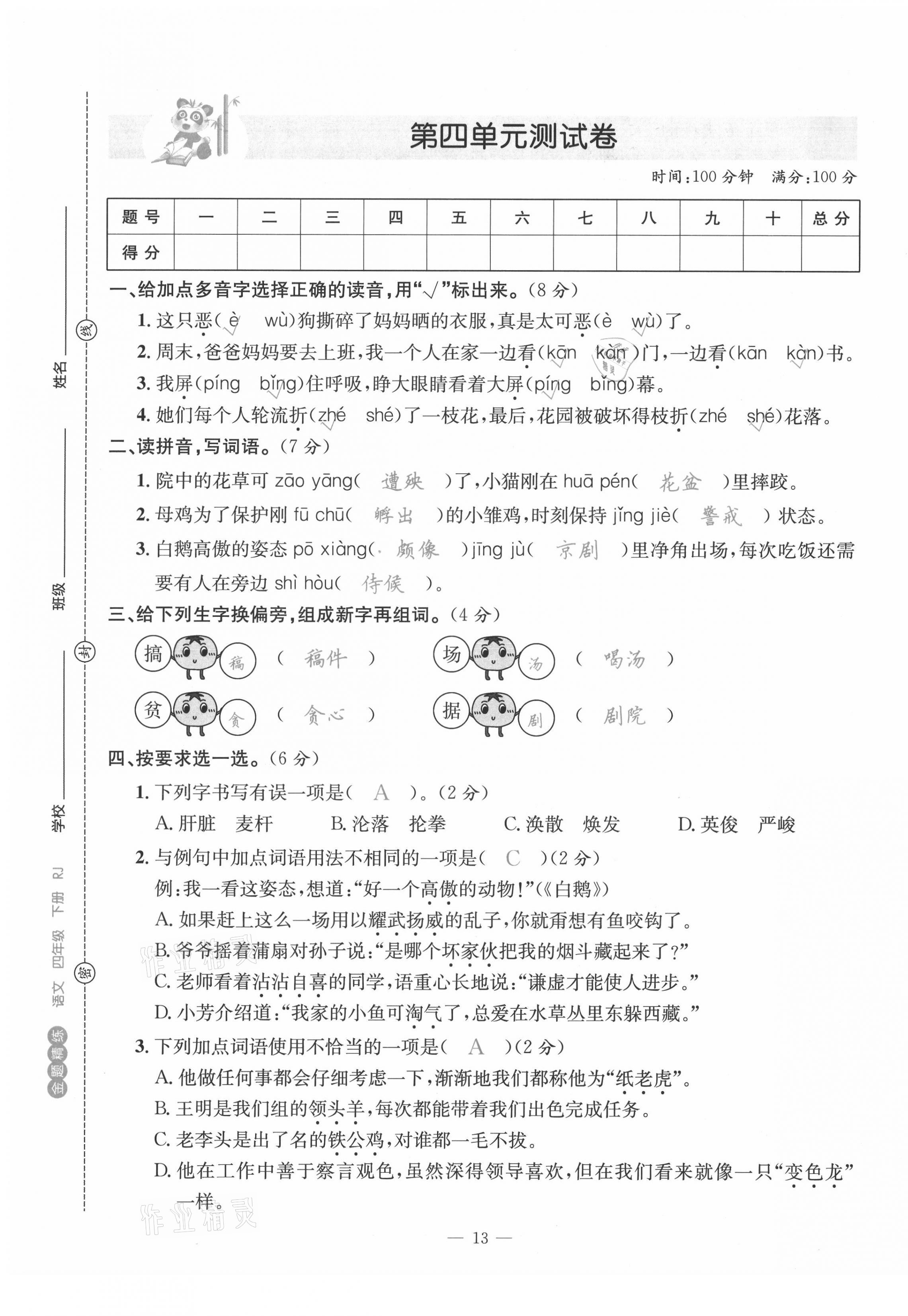 注:目前有些书本章节名称可能整理的还不是很完善,但都是按照顺序排列的,请同学们按照顺序仔细查找。练习册 2021年合力语文金题精练四年级下册人教版 答案主要是用来给同学们做完题方便对答案用的,请勿直接抄袭。
