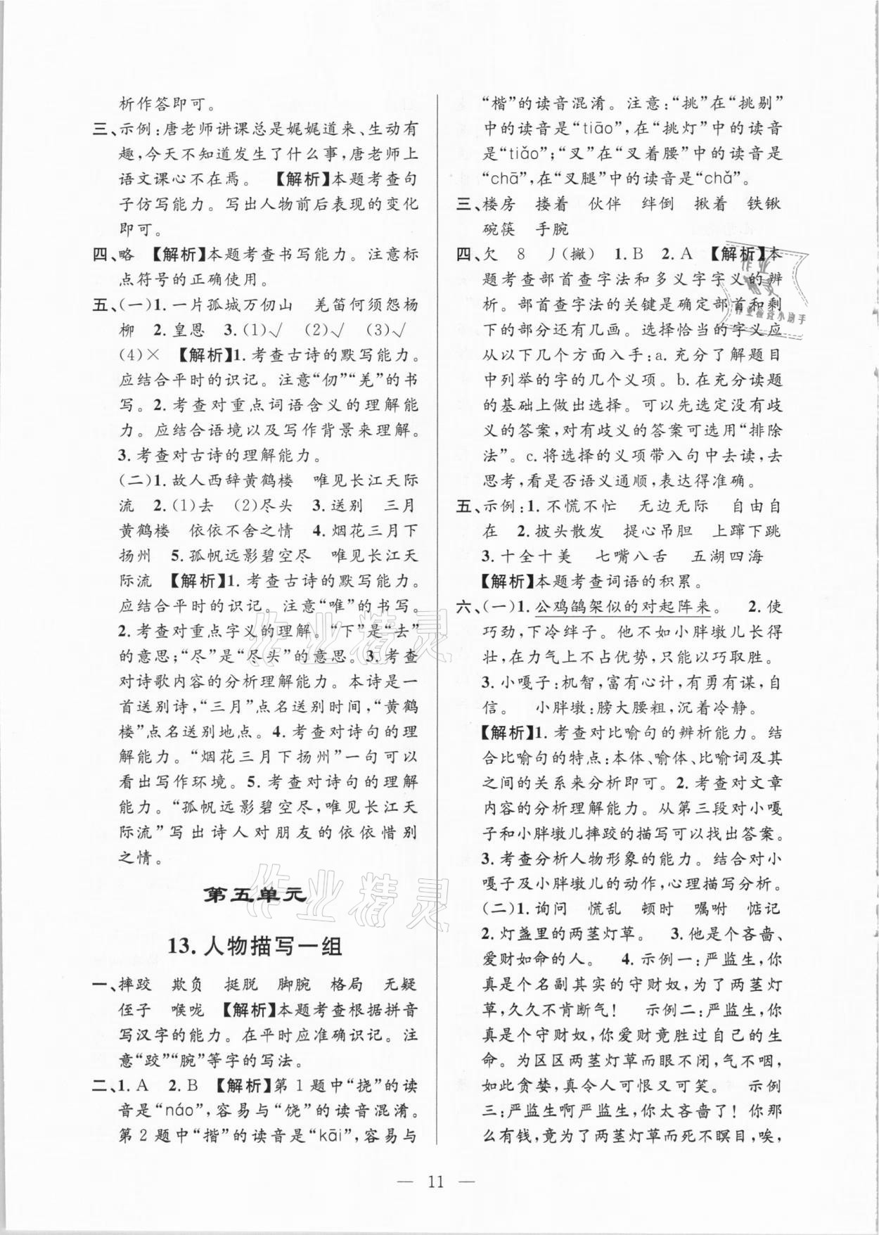 注:目前有些书本章节名称可能整理的还不是很完善,但都是按照顺序排列的,请同学们按照顺序仔细查找。练习册 2021年孟建平课时精练五年级语文下册人教版 答案主要是用来给同学们做完题方便对答案用的,请勿直接抄袭。