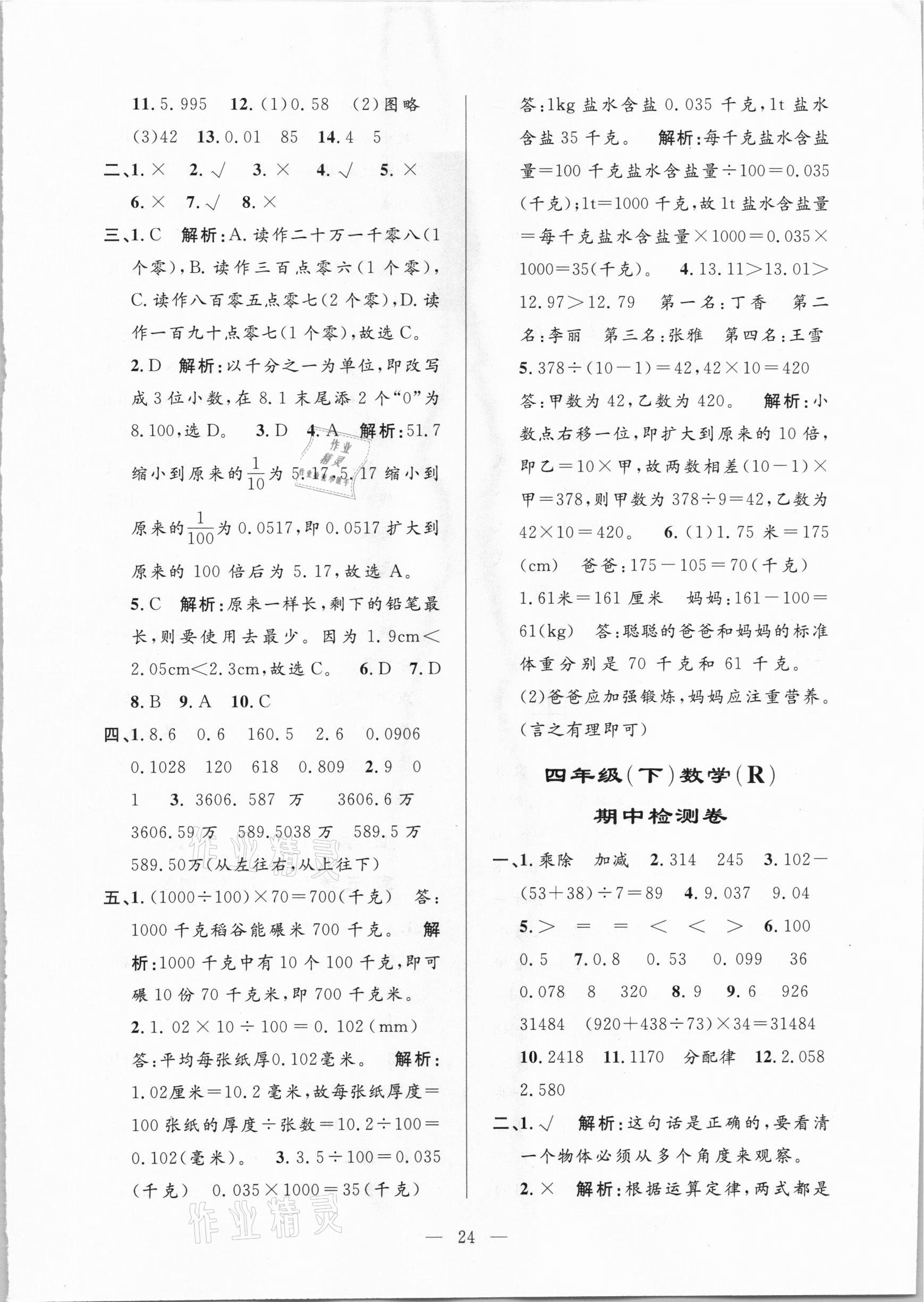 注:目前有些书本章节名称可能整理的还不是很完善,但都是按照顺序排列的,请同学们按照顺序仔细查找。练习册 2021年孟建平课时精练四年级数学下册人教版 答案主要是用来给同学们做完题方便对答案用的,请勿直接抄袭。
