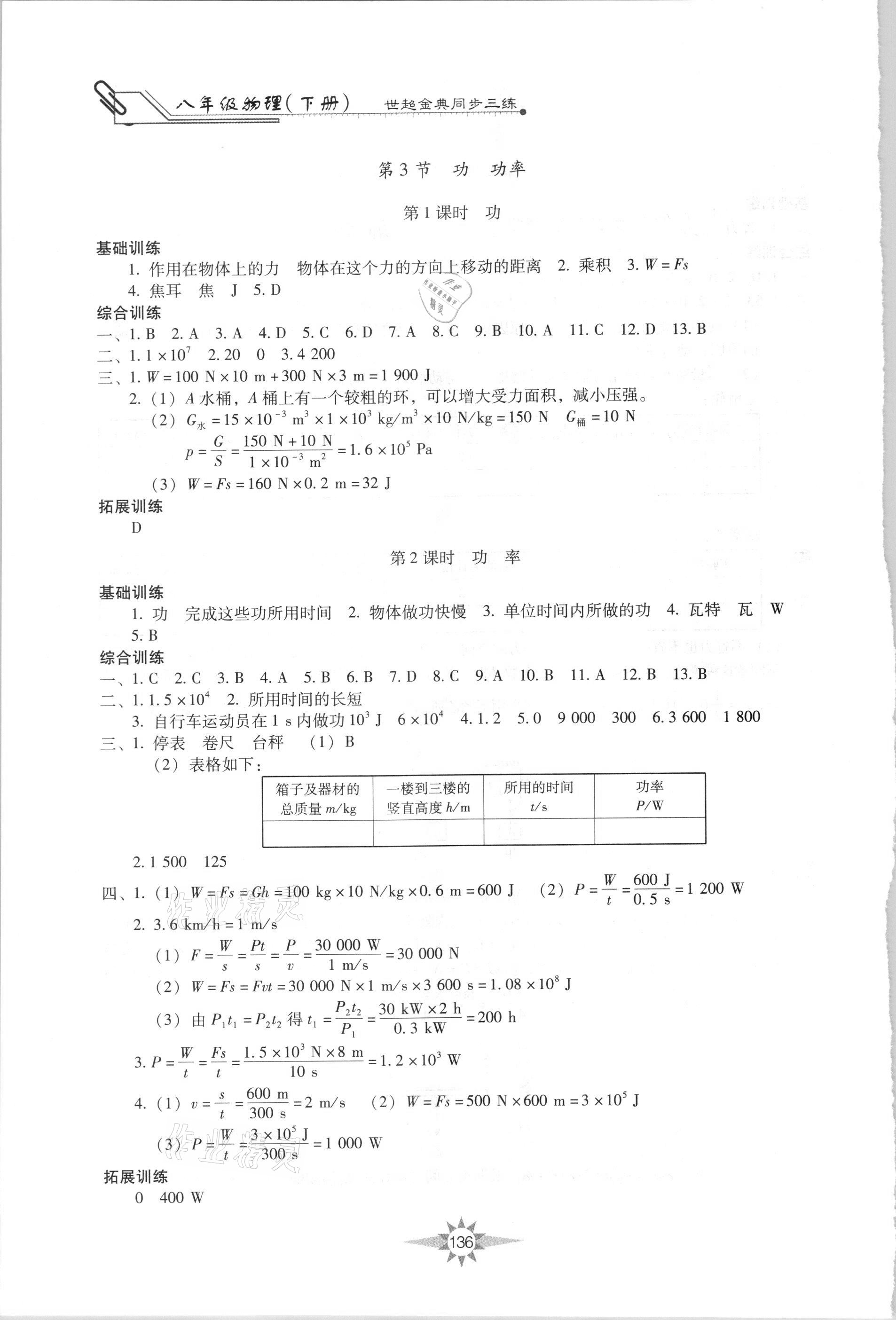 注:目前有些书本章节名称可能整理的还不是很完善,但都是按照顺序排列的,请同学们按照顺序仔细查找。练习册 2021年世超金典同步三练八年级物理下册教科版 答案主要是用来给同学们做完题方便对答案用的,请勿直接抄袭。
