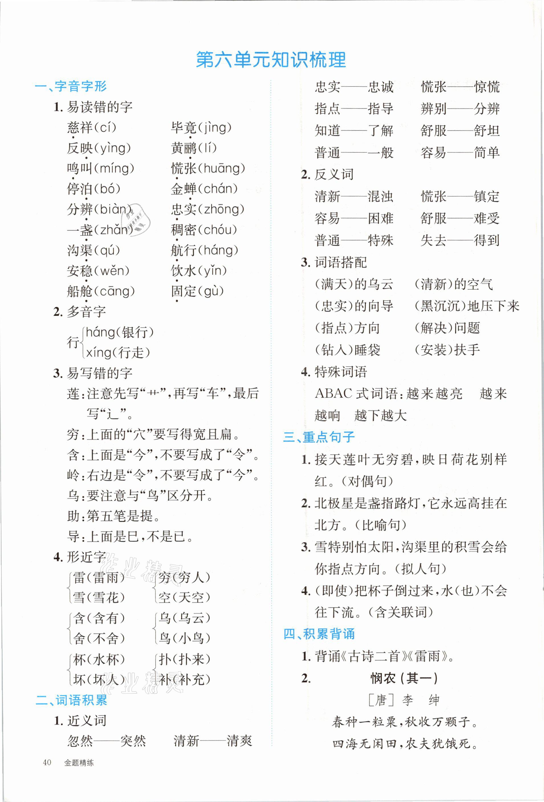 注:目前有些书本章节名称可能整理的还不是很完善,但都是按照顺序排列的,请同学们按照顺序仔细查找。练习册 2021年合力语文金题精练二年级下册人教版 答案主要是用来给同学们做完题方便对答案用的,请勿直接抄袭。