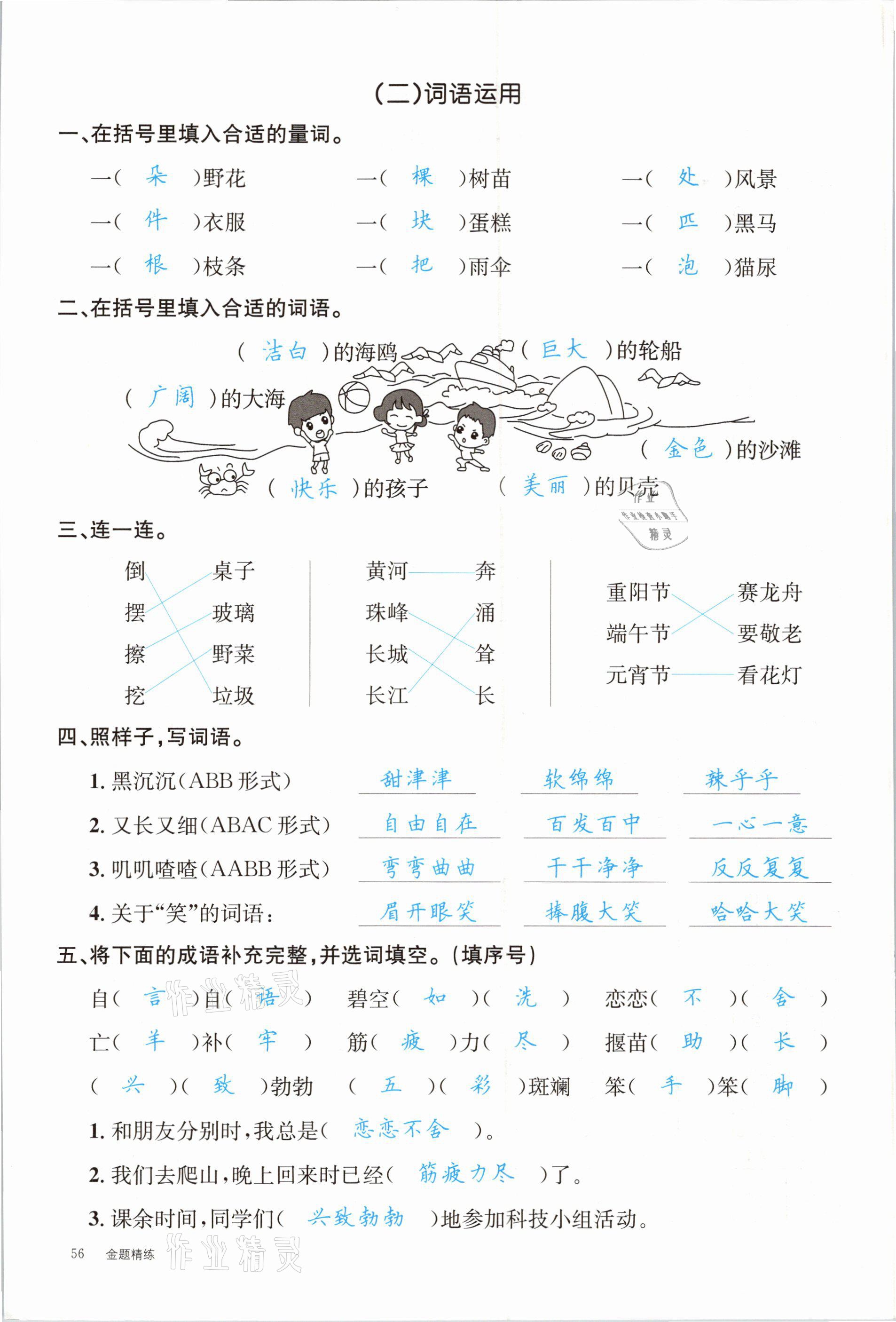 注:目前有些书本章节名称可能整理的还不是很完善,但都是按照顺序排列的,请同学们按照顺序仔细查找。练习册 2021年合力语文金题精练二年级下册人教版 答案主要是用来给同学们做完题方便对答案用的,请勿直接抄袭。