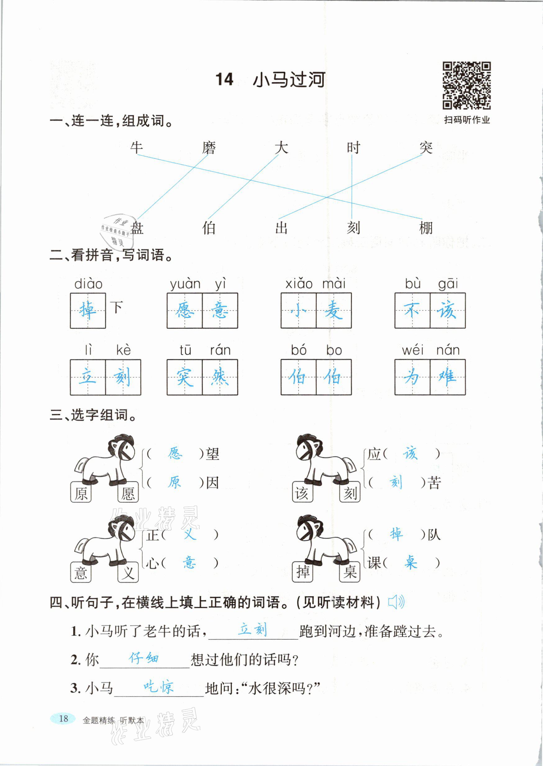 注:目前有些书本章节名称可能整理的还不是很完善,但都是按照顺序排列的,请同学们按照顺序仔细查找。练习册 2021年合力语文金题精练二年级下册人教版 答案主要是用来给同学们做完题方便对答案用的,请勿直接抄袭。