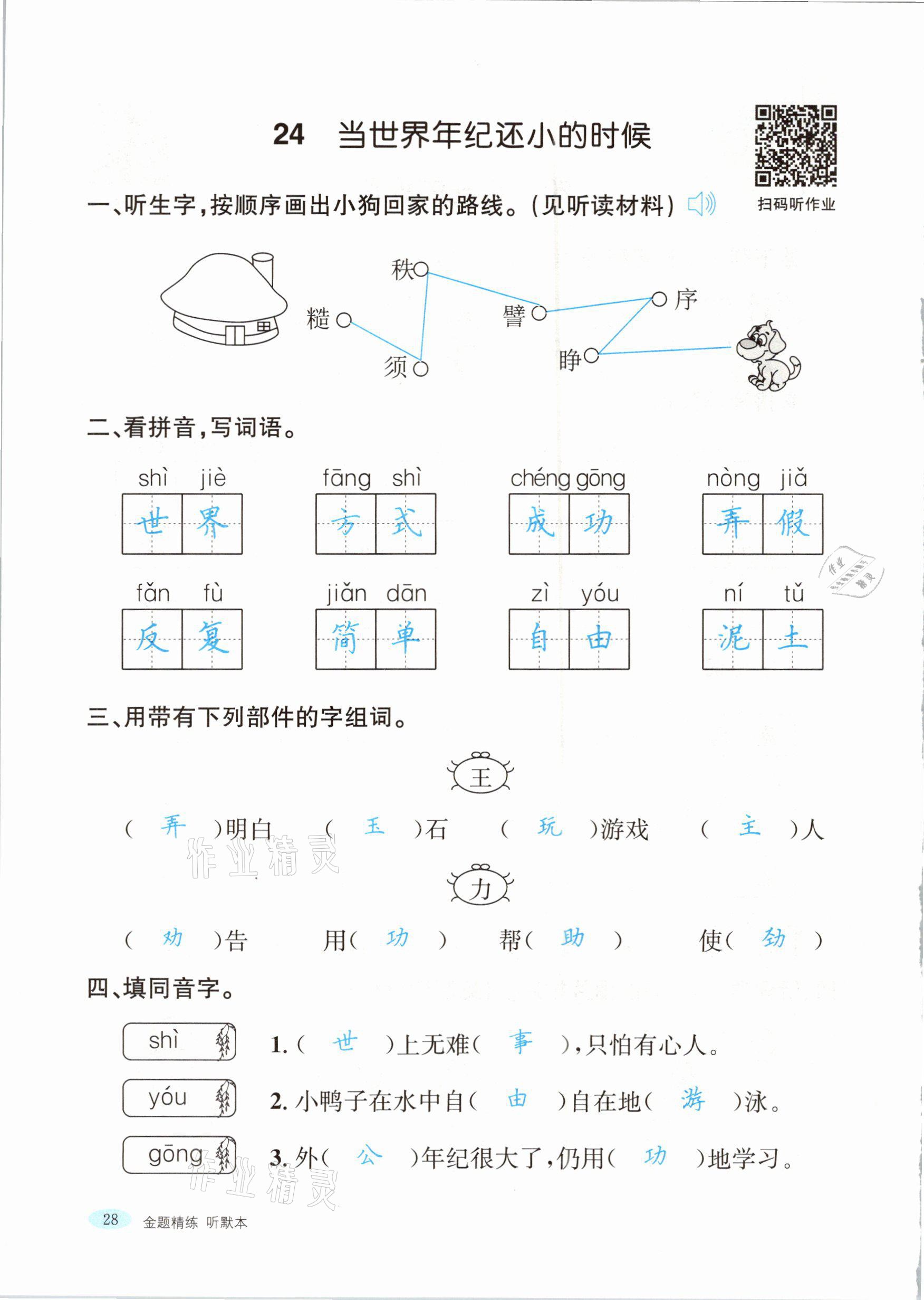 注:目前有些书本章节名称可能整理的还不是很完善,但都是按照顺序排列的,请同学们按照顺序仔细查找。练习册 2021年合力语文金题精练二年级下册人教版 答案主要是用来给同学们做完题方便对答案用的,请勿直接抄袭。