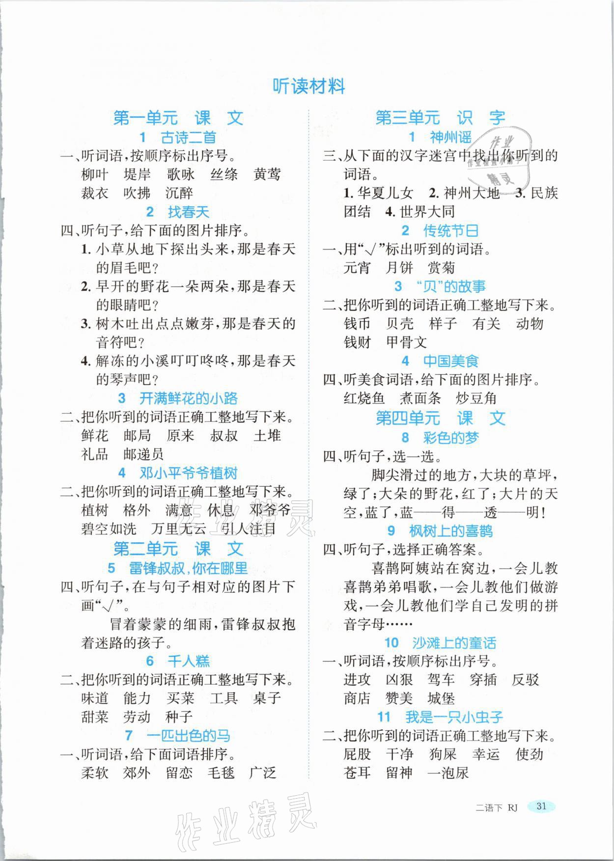 注:目前有些书本章节名称可能整理的还不是很完善,但都是按照顺序排列的,请同学们按照顺序仔细查找。练习册 2021年合力语文金题精练二年级下册人教版 答案主要是用来给同学们做完题方便对答案用的,请勿直接抄袭。