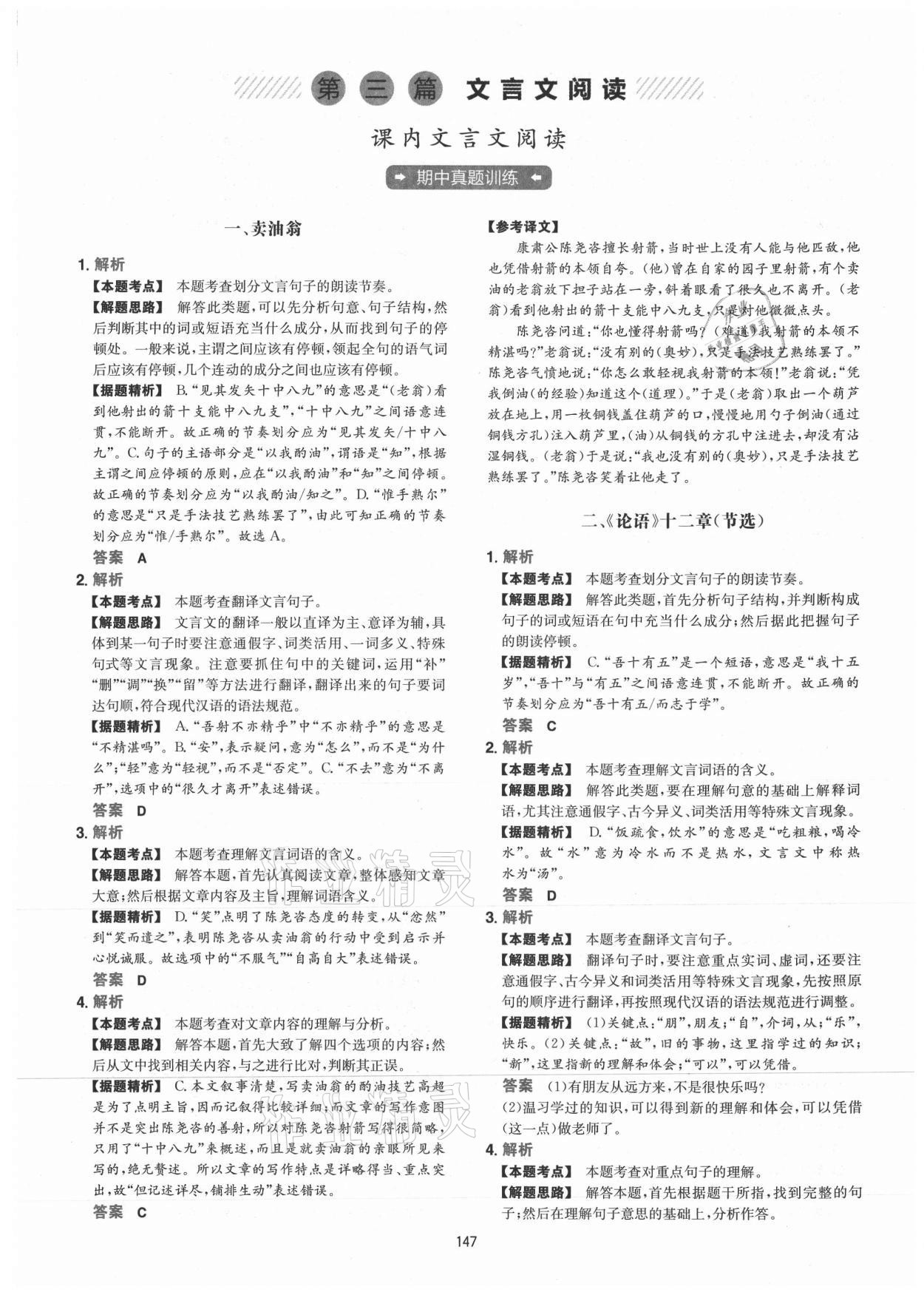 注:目前有些书本章节名称可能整理的还不是很完善,但都是按照顺序排列的,请同学们按照顺序仔细查找。练习册 2021年一本初中语文阅读训练五合一阅读真题100篇七年级人教版 答案主要是用来给同学们做完题方便对答案用的,请勿直接抄袭。