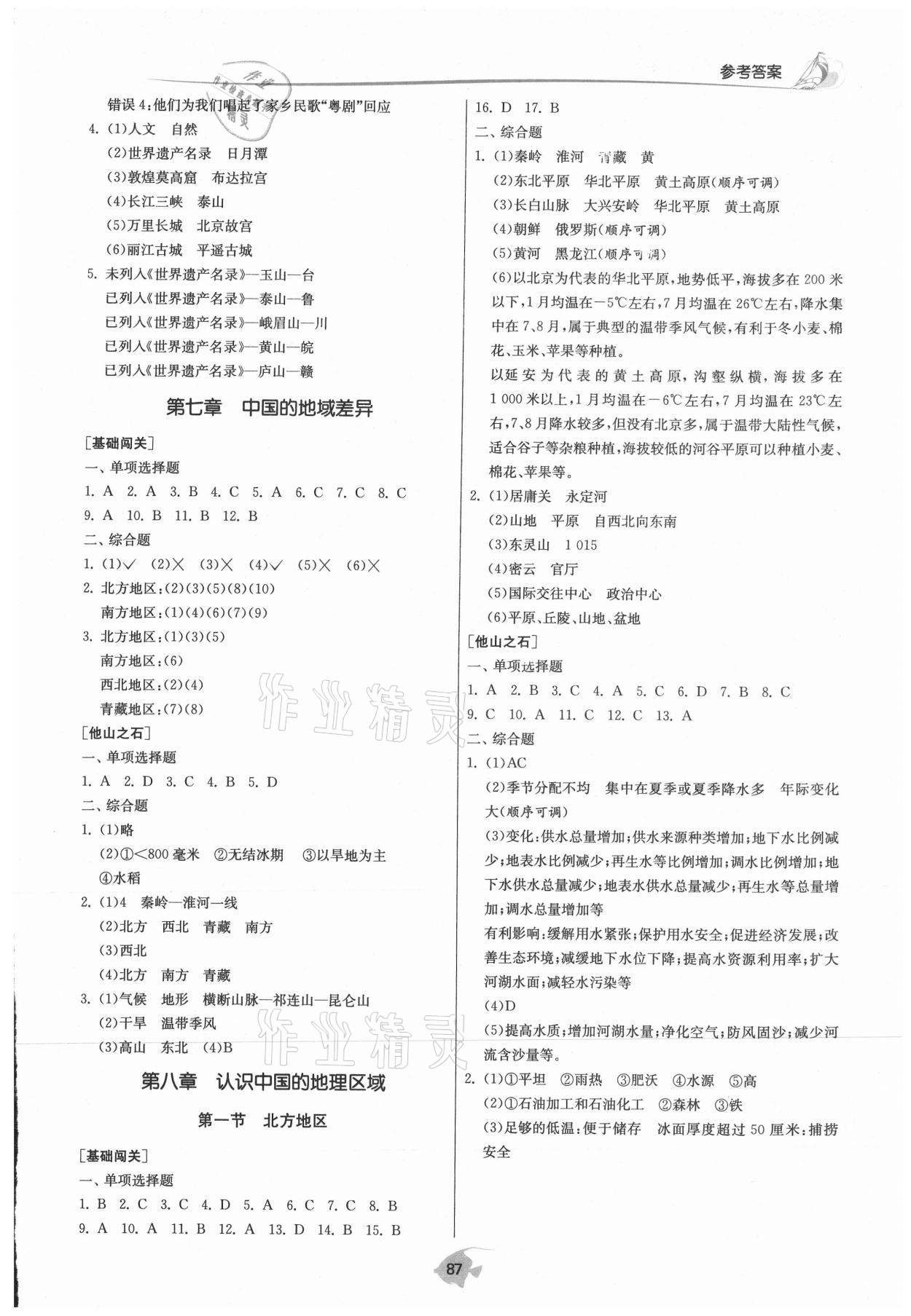注:目前有些书本章节名称可能整理的还不是很完善,但都是按照顺序排列的,请同学们按照顺序仔细查找。练习册 2021年1课3练课时训练七年级地理下册中图版北京专版 答案主要是用来给同学们做完题方便对答案用的,请勿直接抄袭。