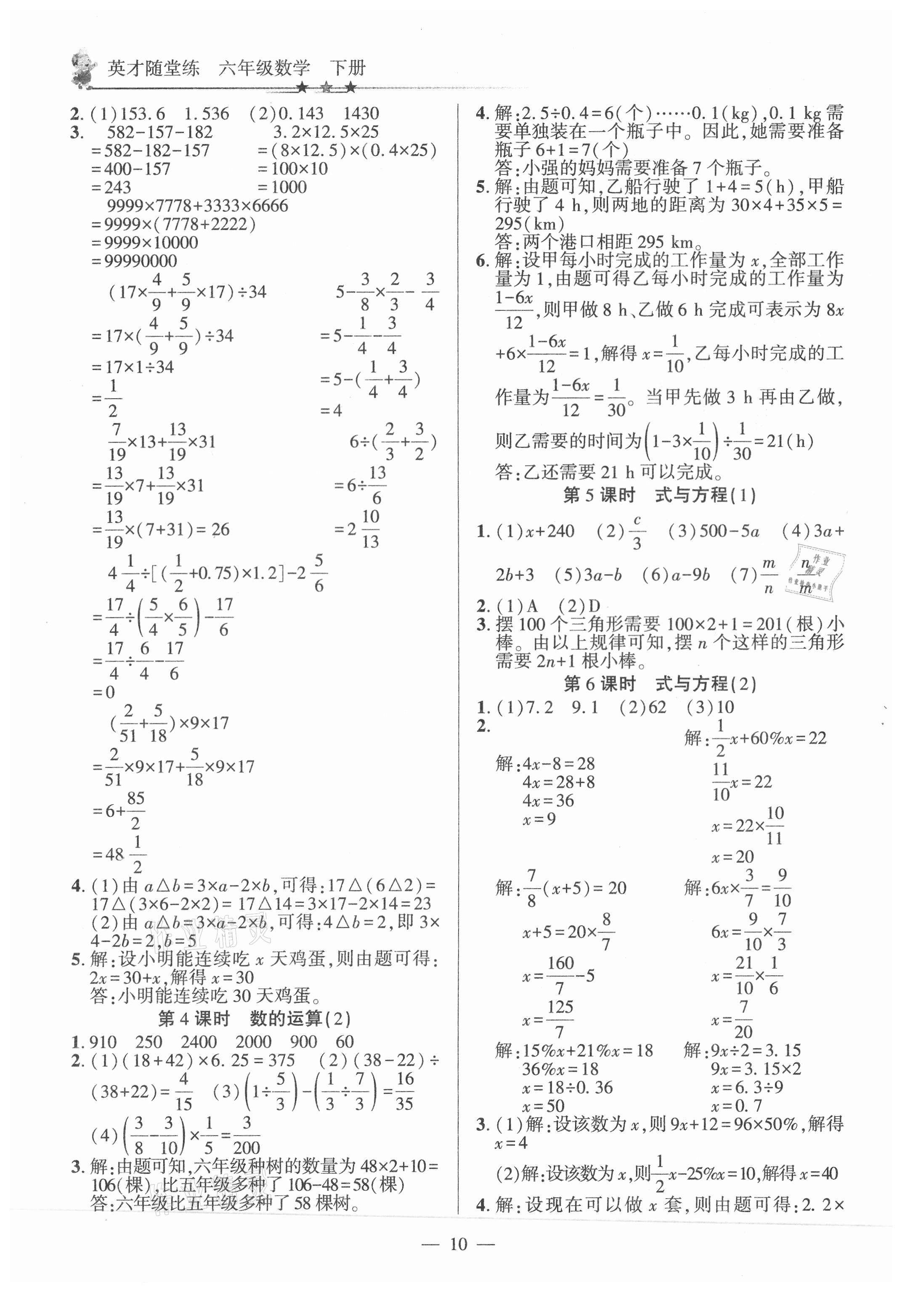 注:目前有些书本章节名称可能整理的还不是很完善,但都是按照顺序排列的,请同学们按照顺序仔细查找。练习册 2021年英才随堂练六年级数学下册人教版 答案主要是用来给同学们做完题方便对答案用的,请勿直接抄袭。