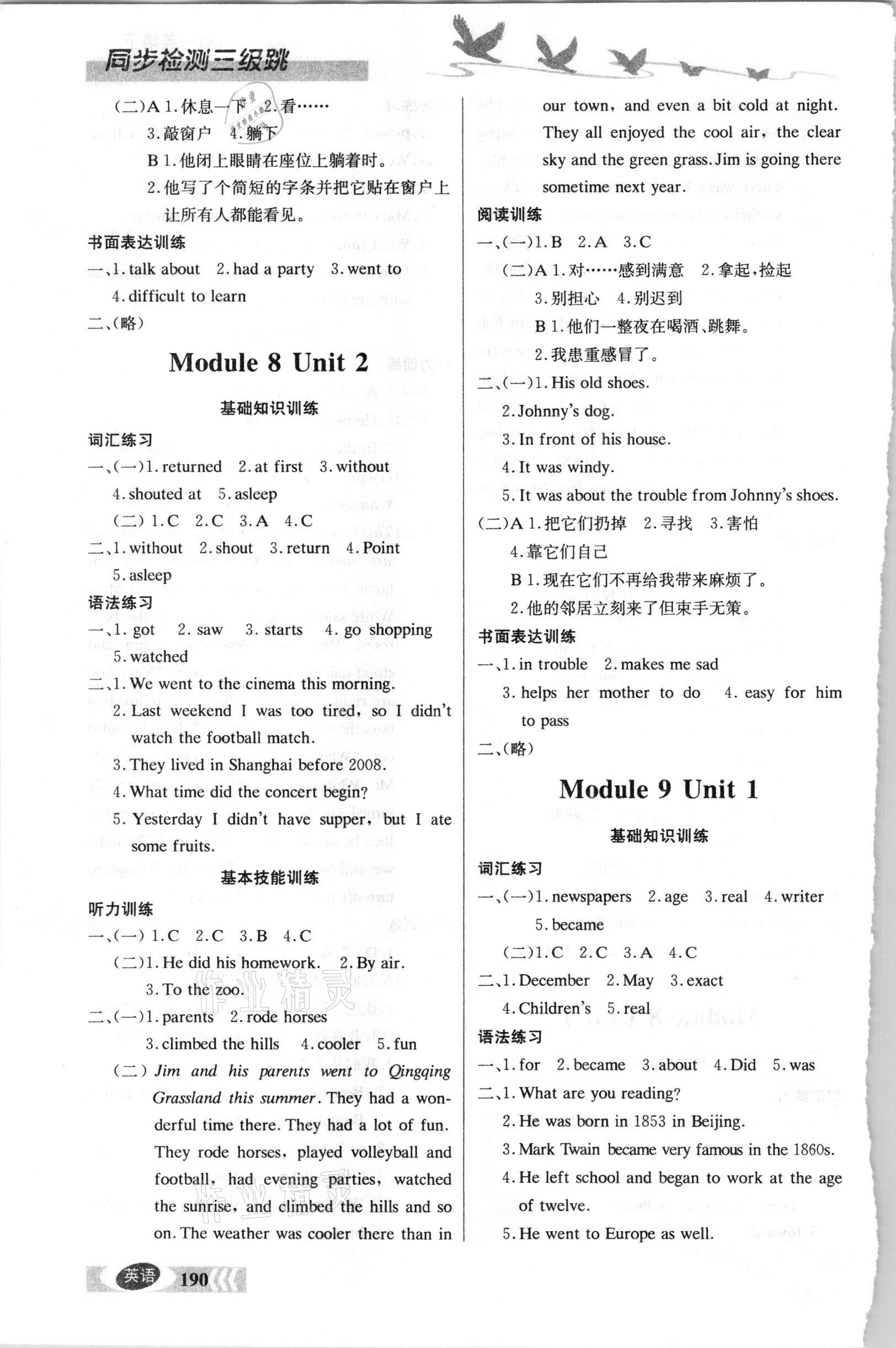 注:目前有些书本章节名称可能整理的还不是很完善,但都是按照顺序排列的,请同学们按照顺序仔细查找。练习册 2021年同步检测三级跳初一英语下册外研版 答案主要是用来给同学们做完题方便对答案用的,请勿直接抄袭。