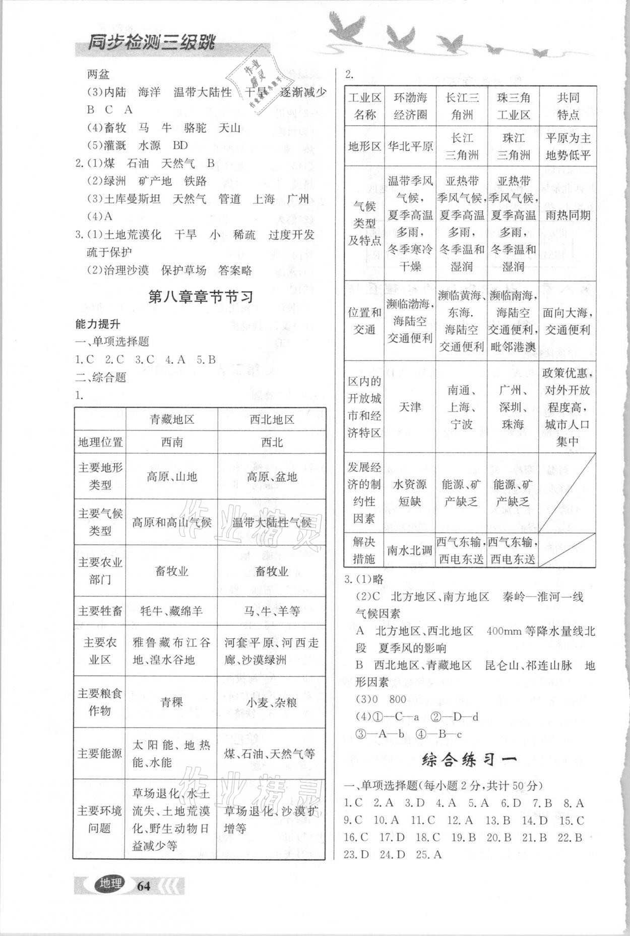 注:目前有些书本章节名称可能整理的还不是很完善,但都是按照顺序排列的,请同学们按照顺序仔细查找。练习册 2021年同步检测三级跳初一地理下册中图版 答案主要是用来给同学们做完题方便对答案用的,请勿直接抄袭。