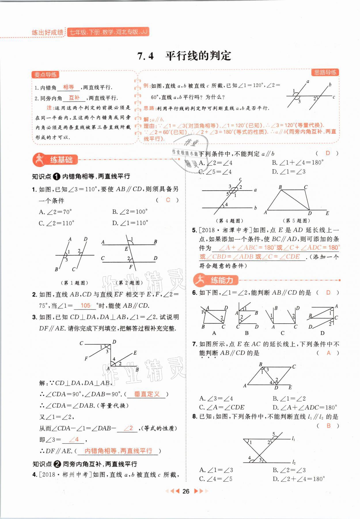 注:目前有些书本章节名称可能整理的还不是很完善,但都是按照顺序排列的,请同学们按照顺序仔细查找。练习册 2021年练出好成绩七年级数学下册冀教版河北专版 答案主要是用来给同学们做完题方便对答案用的,请勿直接抄袭。