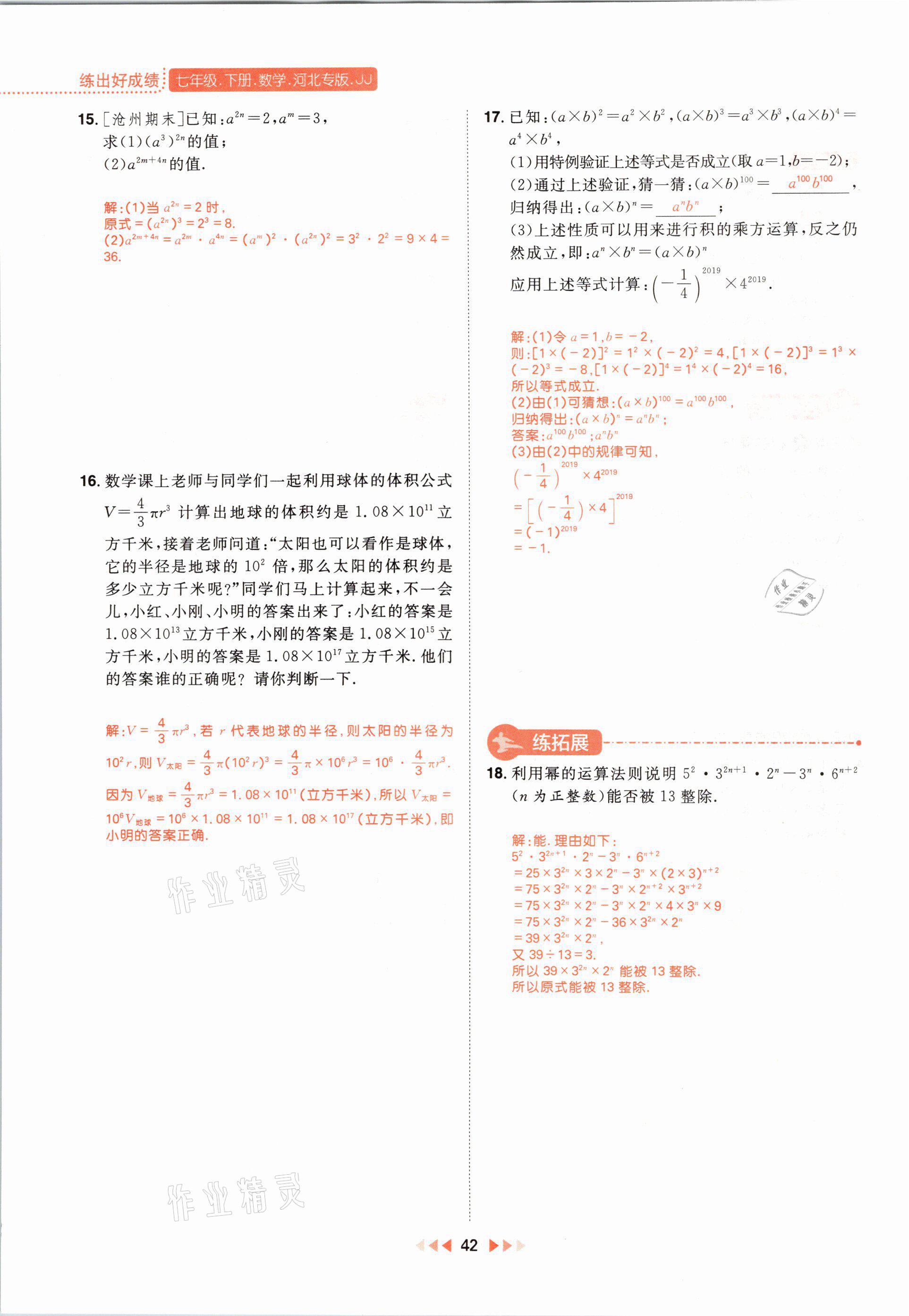 注:目前有些书本章节名称可能整理的还不是很完善,但都是按照顺序排列的,请同学们按照顺序仔细查找。练习册 2021年练出好成绩七年级数学下册冀教版河北专版 答案主要是用来给同学们做完题方便对答案用的,请勿直接抄袭。