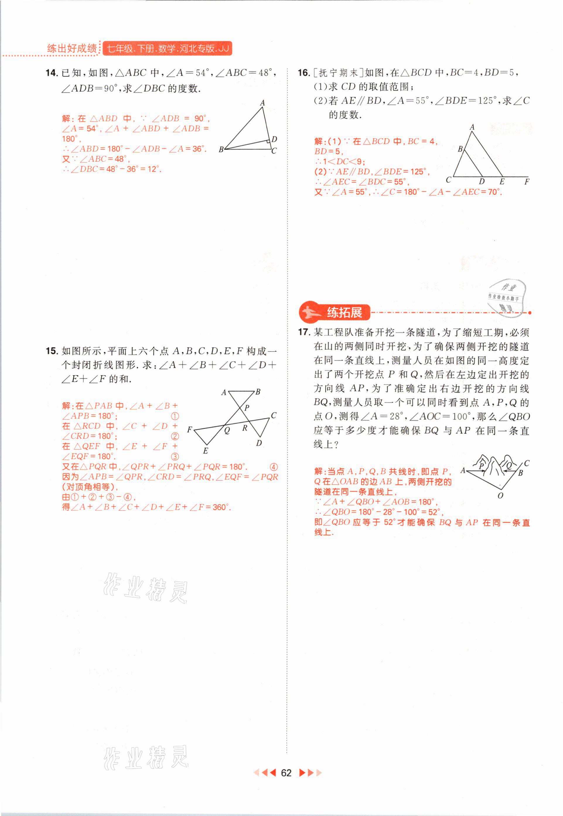 注:目前有些书本章节名称可能整理的还不是很完善,但都是按照顺序排列的,请同学们按照顺序仔细查找。练习册 2021年练出好成绩七年级数学下册冀教版河北专版 答案主要是用来给同学们做完题方便对答案用的,请勿直接抄袭。