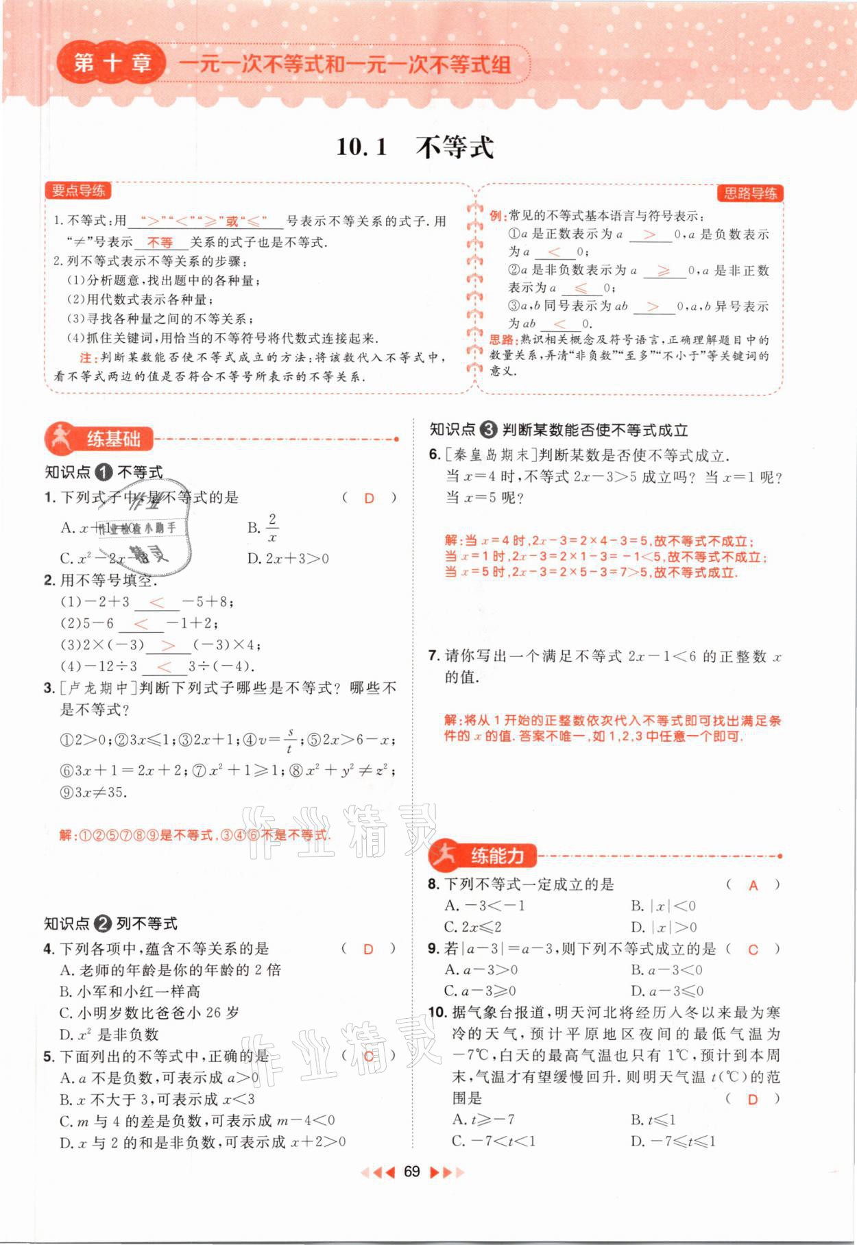 注:目前有些书本章节名称可能整理的还不是很完善,但都是按照顺序排列的,请同学们按照顺序仔细查找。练习册 2021年练出好成绩七年级数学下册冀教版河北专版 答案主要是用来给同学们做完题方便对答案用的,请勿直接抄袭。