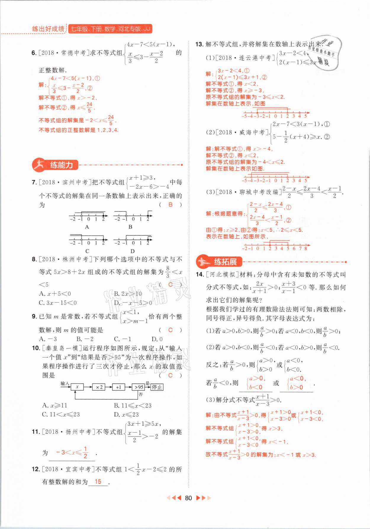 2021年练出好成绩七年级数学下册冀教版河北专版
