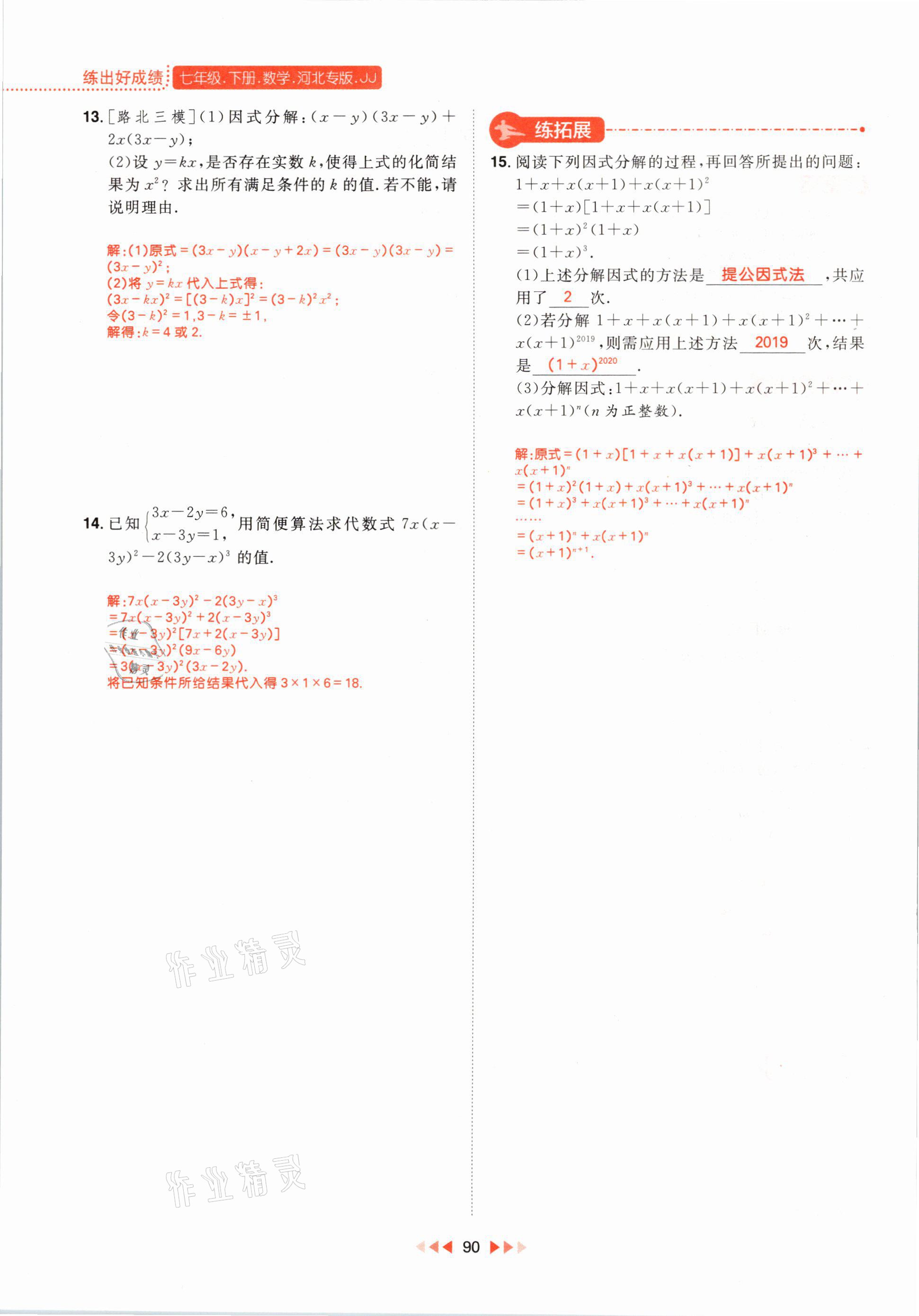 2021年练出好成绩七年级数学下册冀教版河北专版