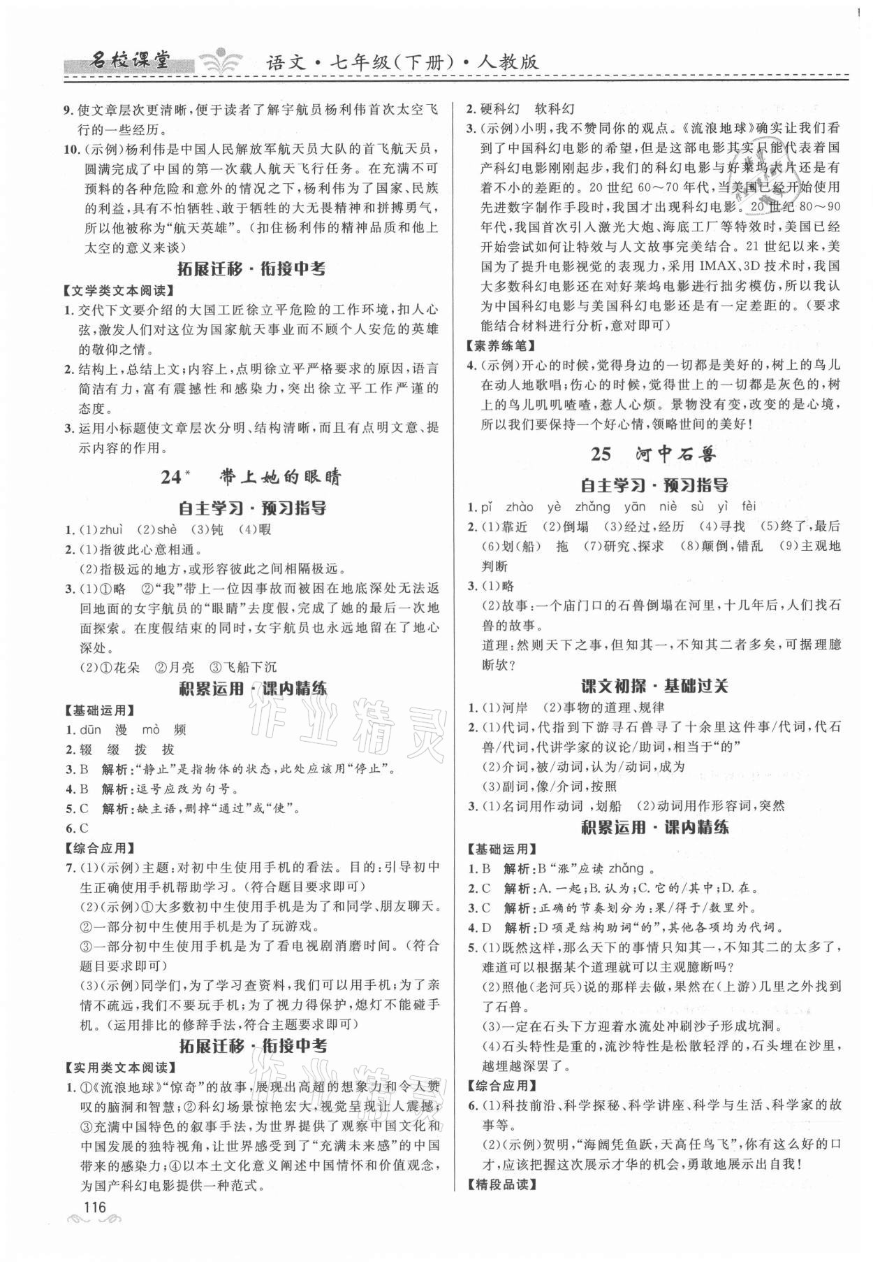 2021年名校课堂七年级语文下册人教版贵州人民出版社