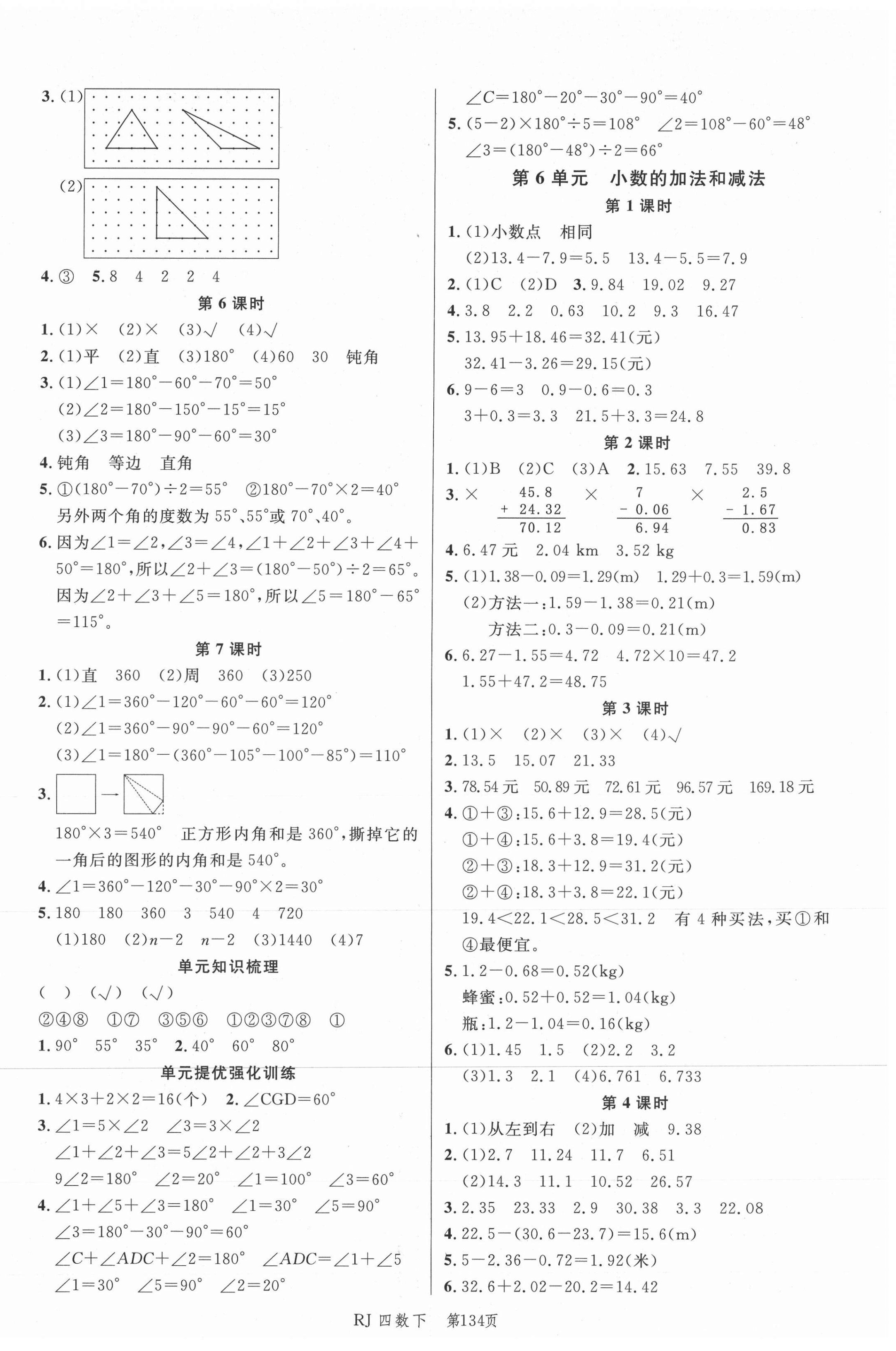 注:目前有些书本章节名称可能整理的还不是很完善,但都是按照顺序排列的,请同学们按照顺序仔细查找。练习册 2021年小状元冲刺100分随堂手册四年级数学下册人教版 答案主要是用来给同学们做完题方便对答案用的,请勿直接抄袭。