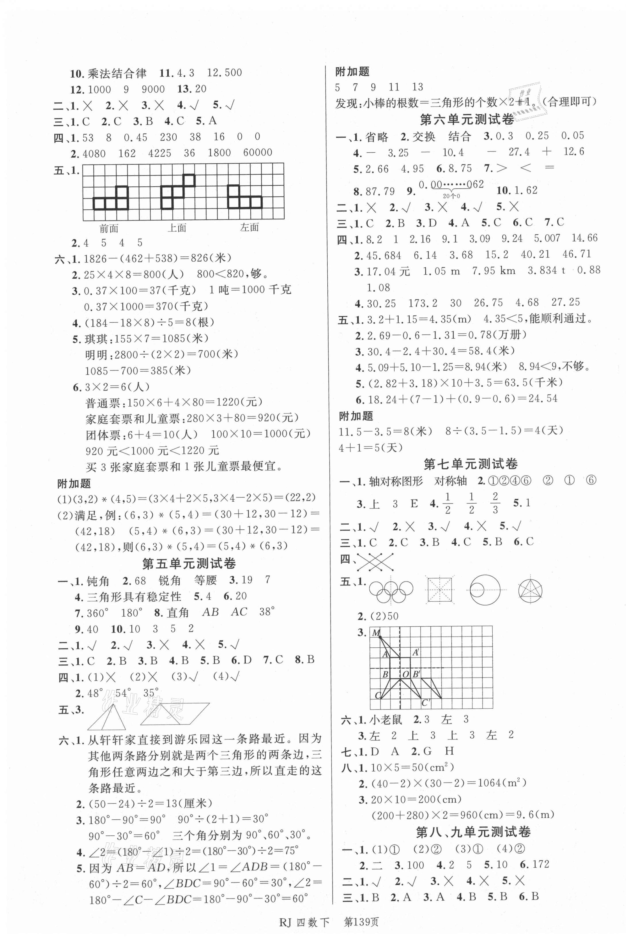 2021年小状元冲刺100分随堂手册四年级数学下册人教版