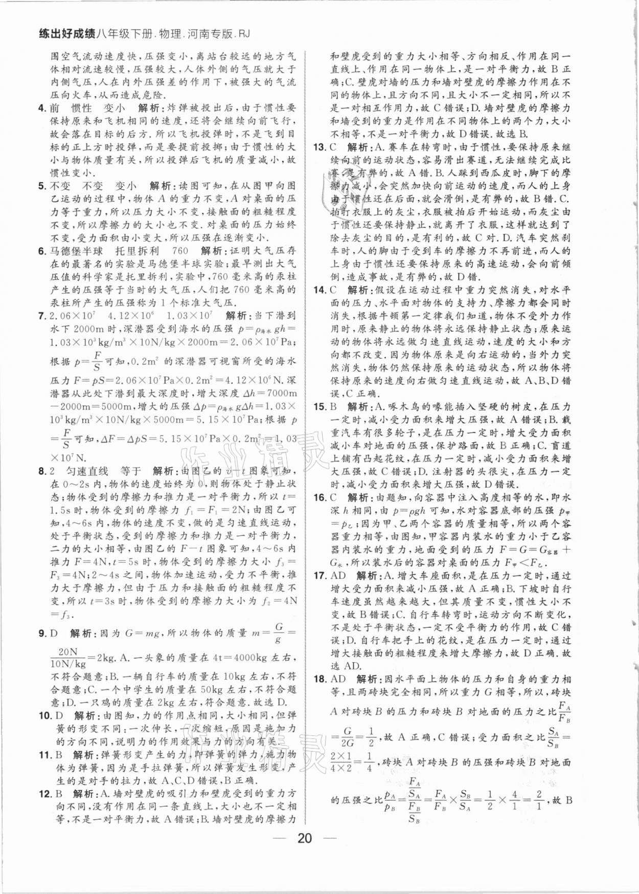 注:目前有些书本章节名称可能整理的还不是很完善,但都是按照顺序排列的,请同学们按照顺序仔细查找。练习册 2021年练出好成绩八年级物理下册人教版河南专版 答案主要是用来给同学们做完题方便对答案用的,请勿直接抄袭。