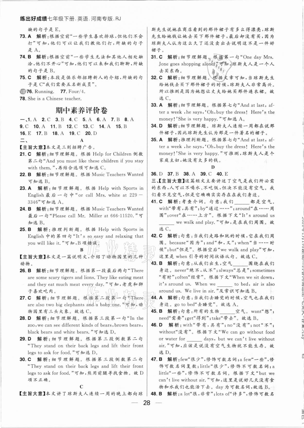 注:目前有些书本章节名称可能整理的还不是很完善,但都是按照顺序排列的,请同学们按照顺序仔细查找。练习册 2021年练出好成绩七年级英语下册人教版河南专版 答案主要是用来给同学们做完题方便对答案用的,请勿直接抄袭。