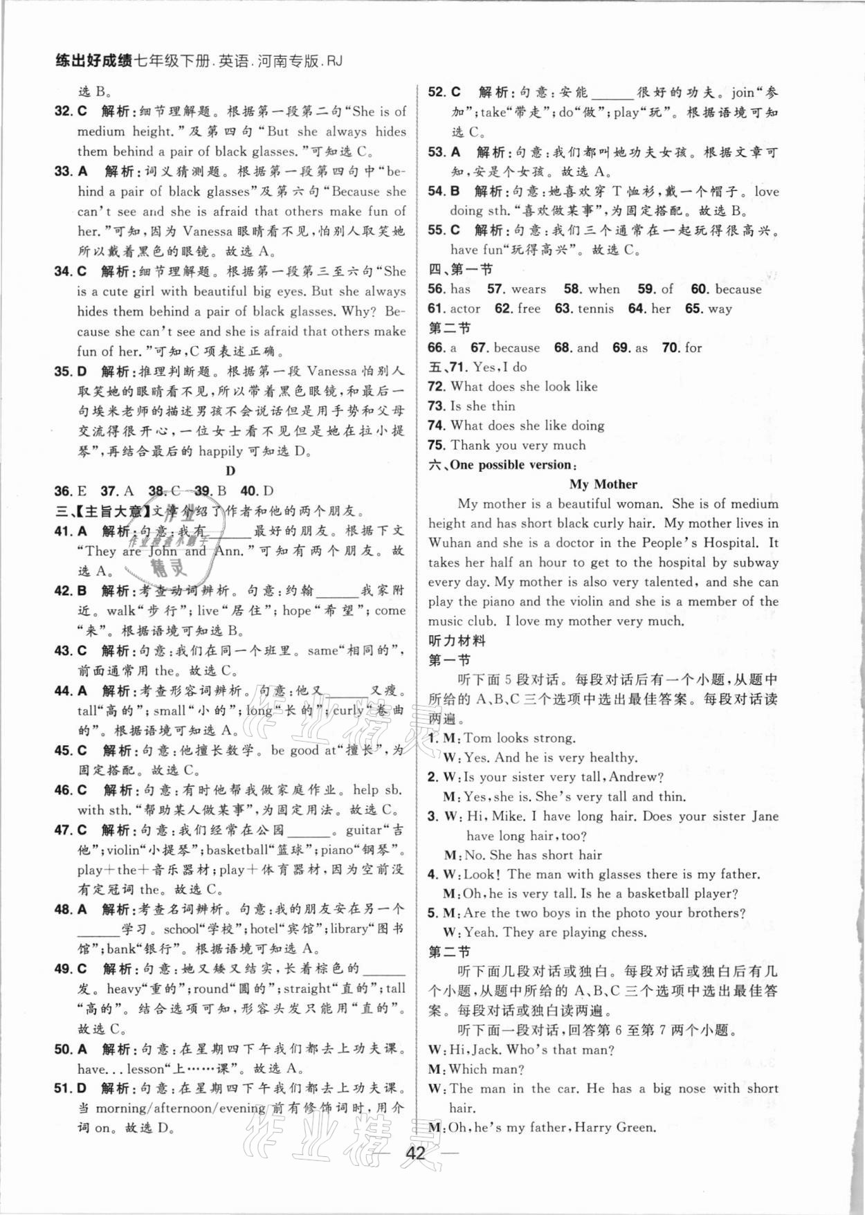 注:目前有些书本章节名称可能整理的还不是很完善,但都是按照顺序排列的,请同学们按照顺序仔细查找。练习册 2021年练出好成绩七年级英语下册人教版河南专版 答案主要是用来给同学们做完题方便对答案用的,请勿直接抄袭。