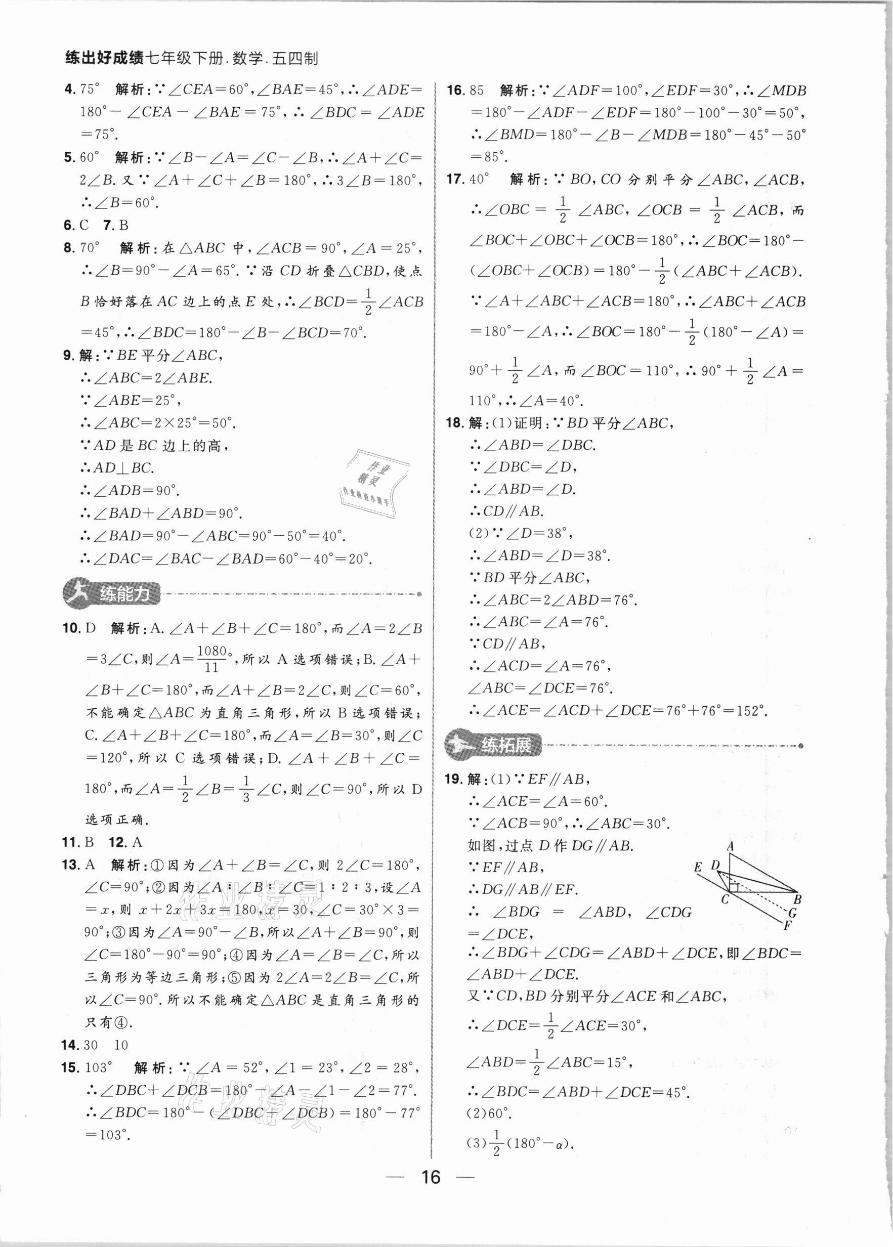 注:目前有些书本章节名称可能整理的还不是很完善,但都是按照顺序排列的,请同学们按照顺序仔细查找。练习册 2021年练出好成绩七年级数学下册鲁教版54制 答案主要是用来给同学们做完题方便对答案用的,请勿直接抄袭。