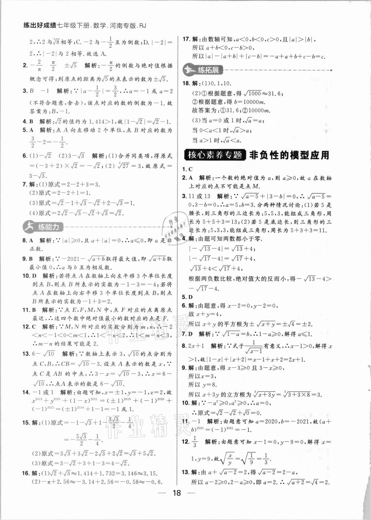 注:目前有些书本章节名称可能整理的还不是很完善,但都是按照顺序排列的,请同学们按照顺序仔细查找。练习册 2021年练出好成绩七年级数学下册人教版河南专版 答案主要是用来给同学们做完题方便对答案用的,请勿直接抄袭。