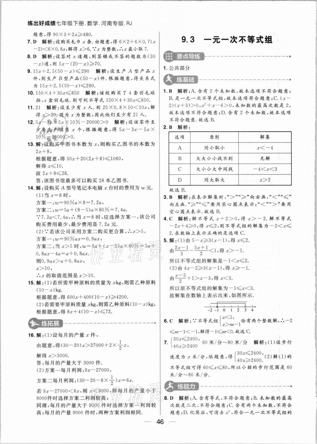 注:目前有些书本章节名称可能整理的还不是很完善,但都是按照顺序排列的,请同学们按照顺序仔细查找。练习册 2021年练出好成绩七年级数学下册人教版河南专版 答案主要是用来给同学们做完题方便对答案用的,请勿直接抄袭。