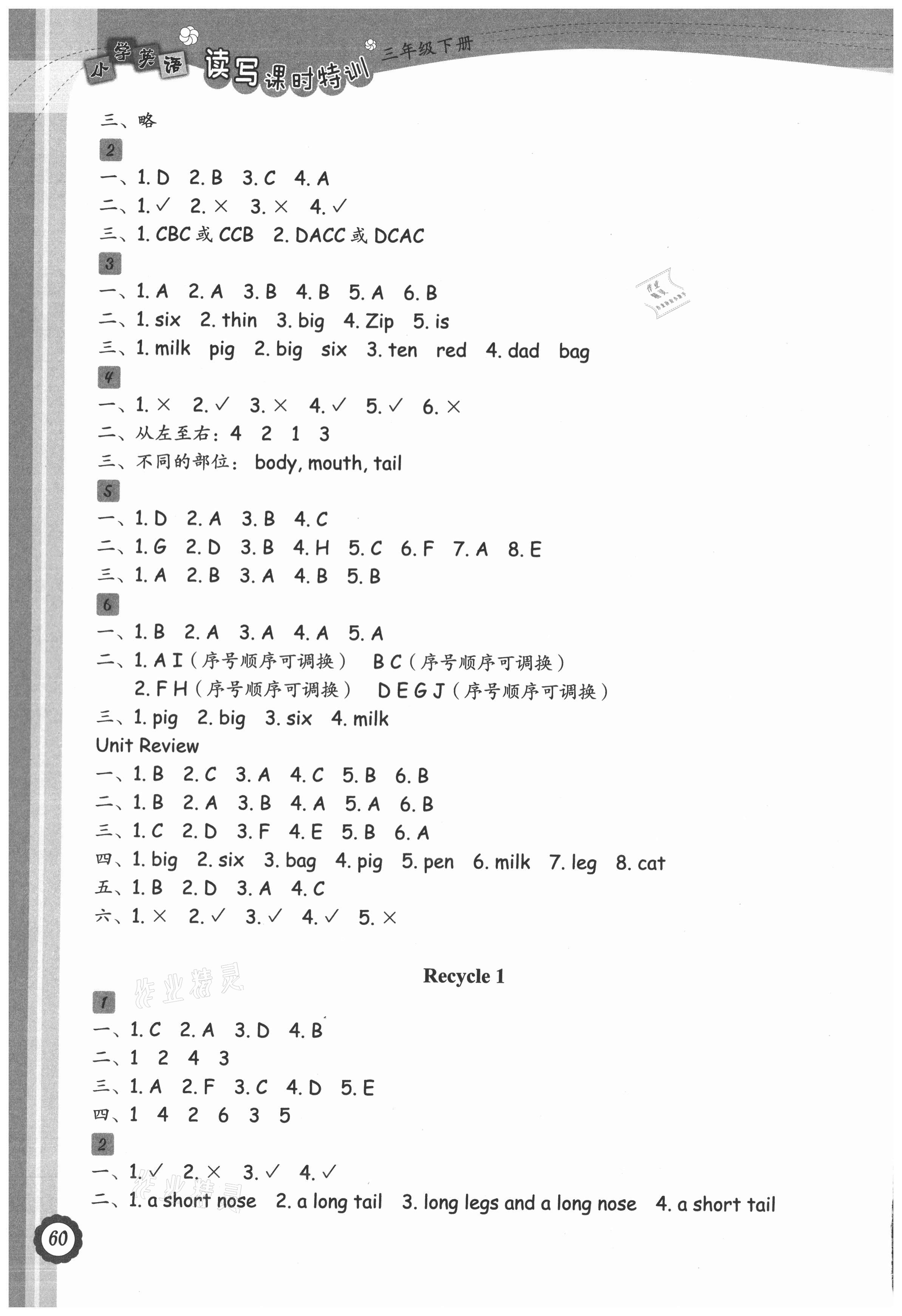 注:目前有些书本章节名称可能整理的还不是很完善,但都是按照顺序排列的,请同学们按照顺序仔细查找。练习册 2021年小学英语读写课时特训三年级英语下册人教PEP版 答案主要是用来给同学们做完题方便对答案用的,请勿直接抄袭。