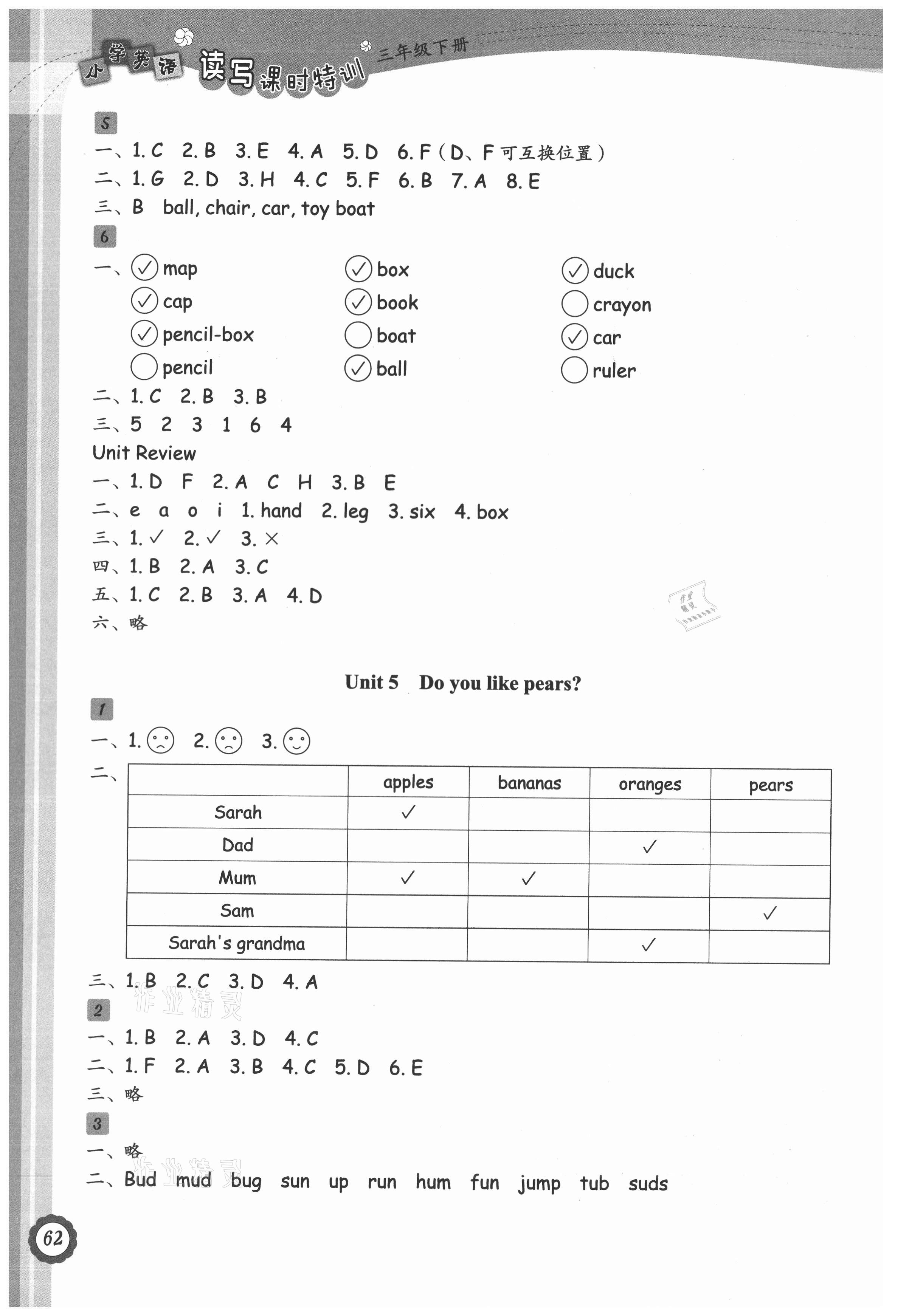 注:目前有些书本章节名称可能整理的还不是很完善,但都是按照顺序排列的,请同学们按照顺序仔细查找。练习册 2021年小学英语读写课时特训三年级英语下册人教PEP版 答案主要是用来给同学们做完题方便对答案用的,请勿直接抄袭。