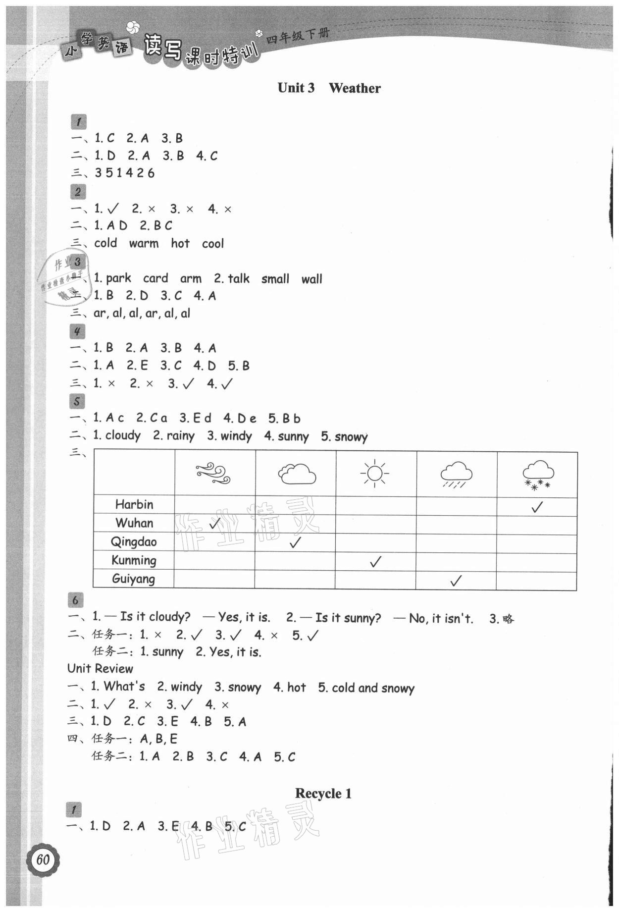 注:目前有些书本章节名称可能整理的还不是很完善,但都是按照顺序排列的,请同学们按照顺序仔细查找。练习册 2021年小学英语读写课时特训四年级英语下册人教PEP版 答案主要是用来给同学们做完题方便对答案用的,请勿直接抄袭。