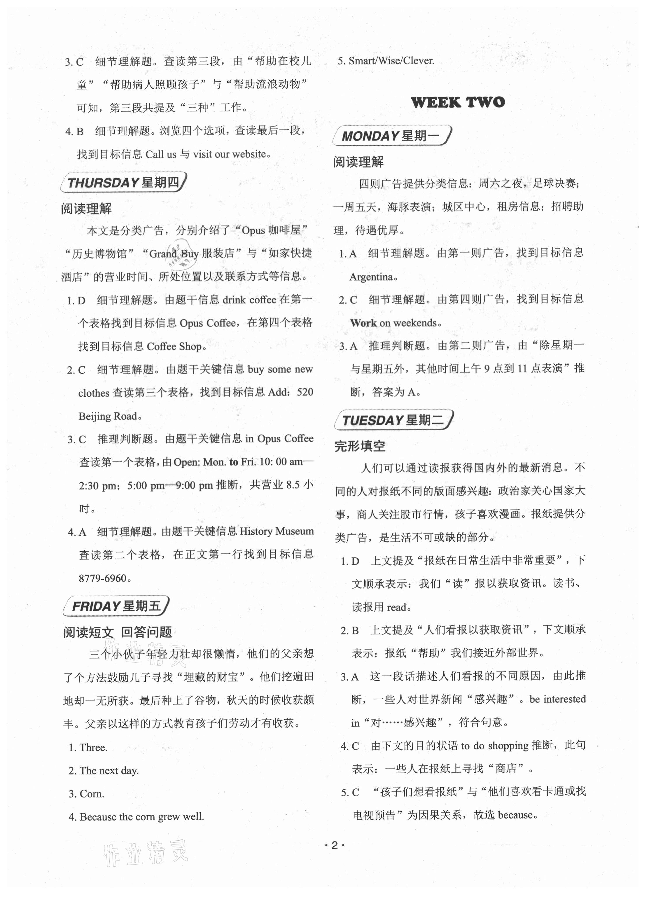 注:目前有些书本章节名称可能整理的还不是很完善,但都是按照顺序排列的,请同学们按照顺序仔细查找。练习册 2021年快捷英语周周练阅读理解与完形填空七年级下册北京专版 答案主要是用来给同学们做完题方便对答案用的,请勿直接抄袭。