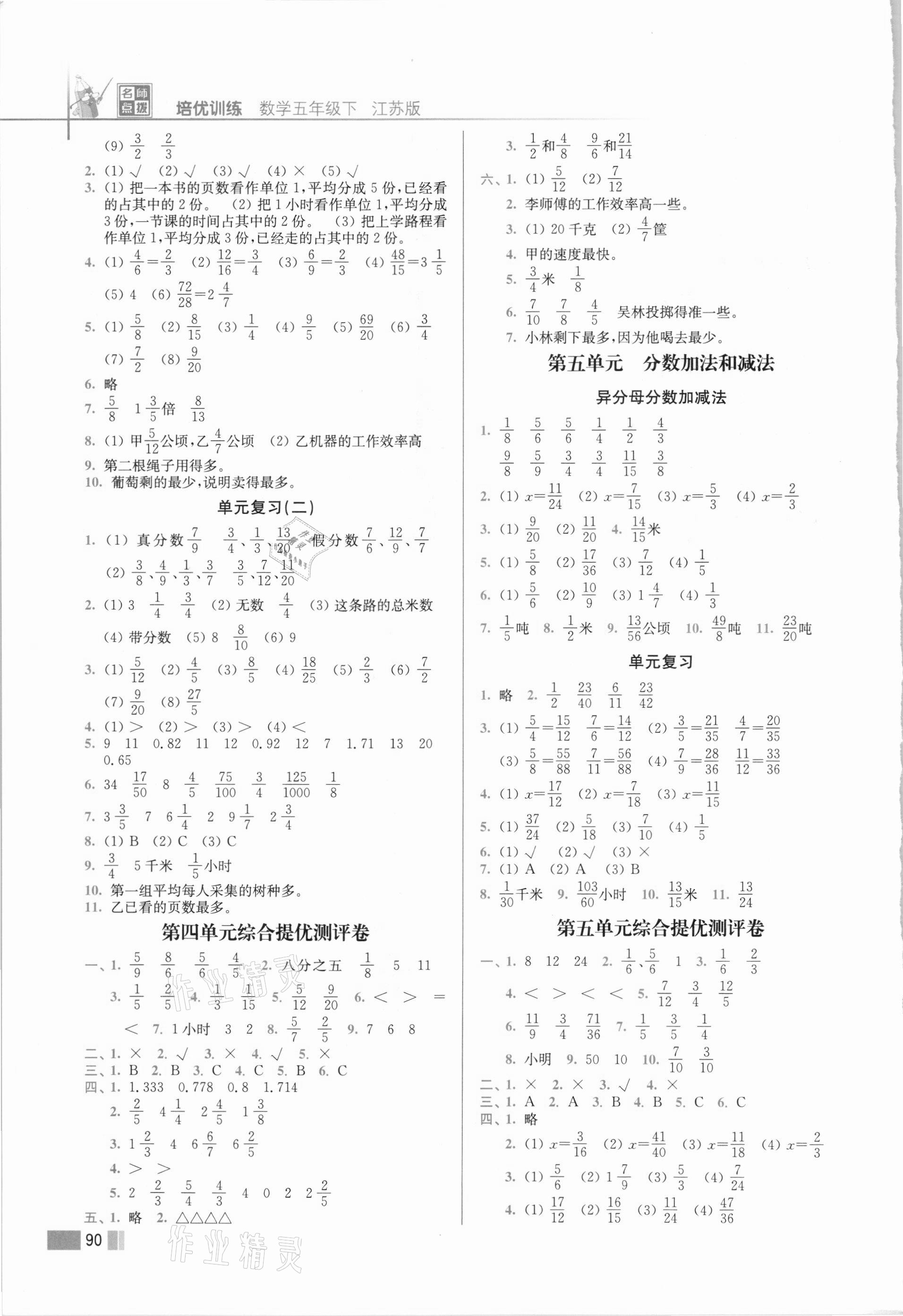 2021年名师点拨培优训练五年级数学下册苏教版