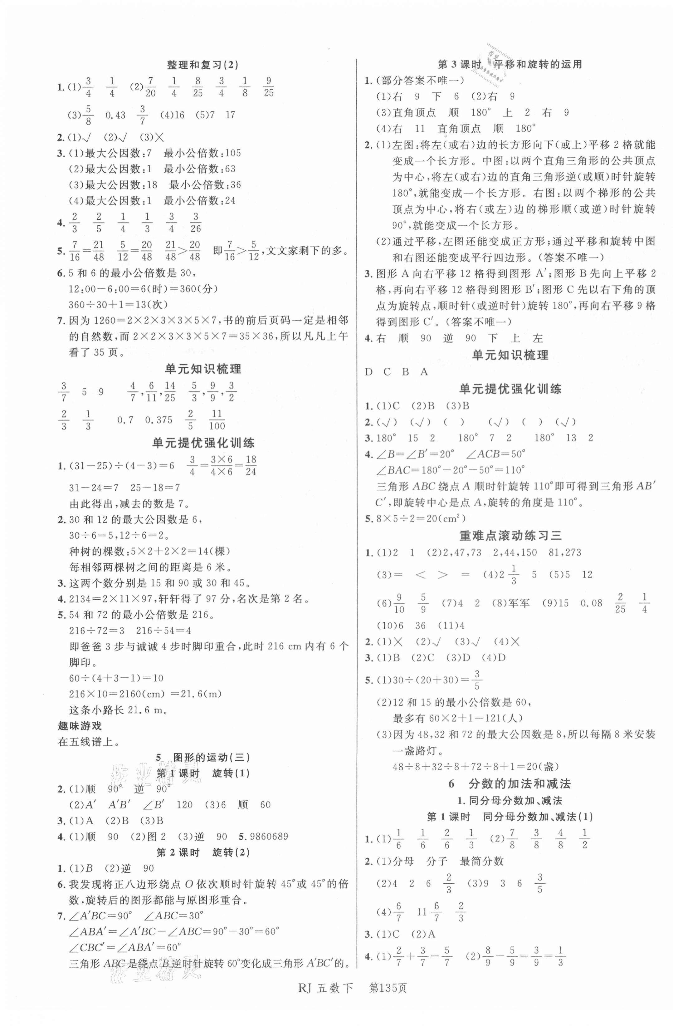 注:目前有些书本章节名称可能整理的还不是很完善,但都是按照顺序排列的,请同学们按照顺序仔细查找。练习册 2021年小状元冲刺100分随堂手册五年级数学下册人教版 答案主要是用来给同学们做完题方便对答案用的,请勿直接抄袭。