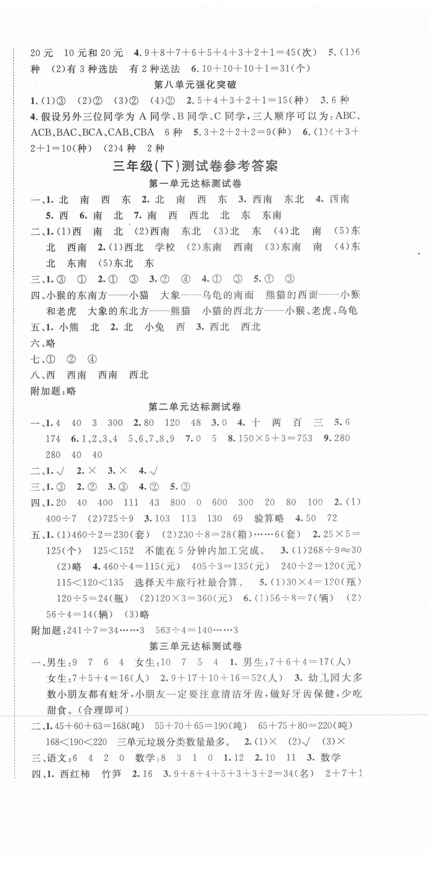 注:目前有些书本章节名称可能整理的还不是很完善,但都是按照顺序排列的,请同学们按照顺序仔细查找。练习册 2021年全程夺冠三年级数学下册人教版宁波出版社 答案主要是用来给同学们做完题方便对答案用的,请勿直接抄袭。