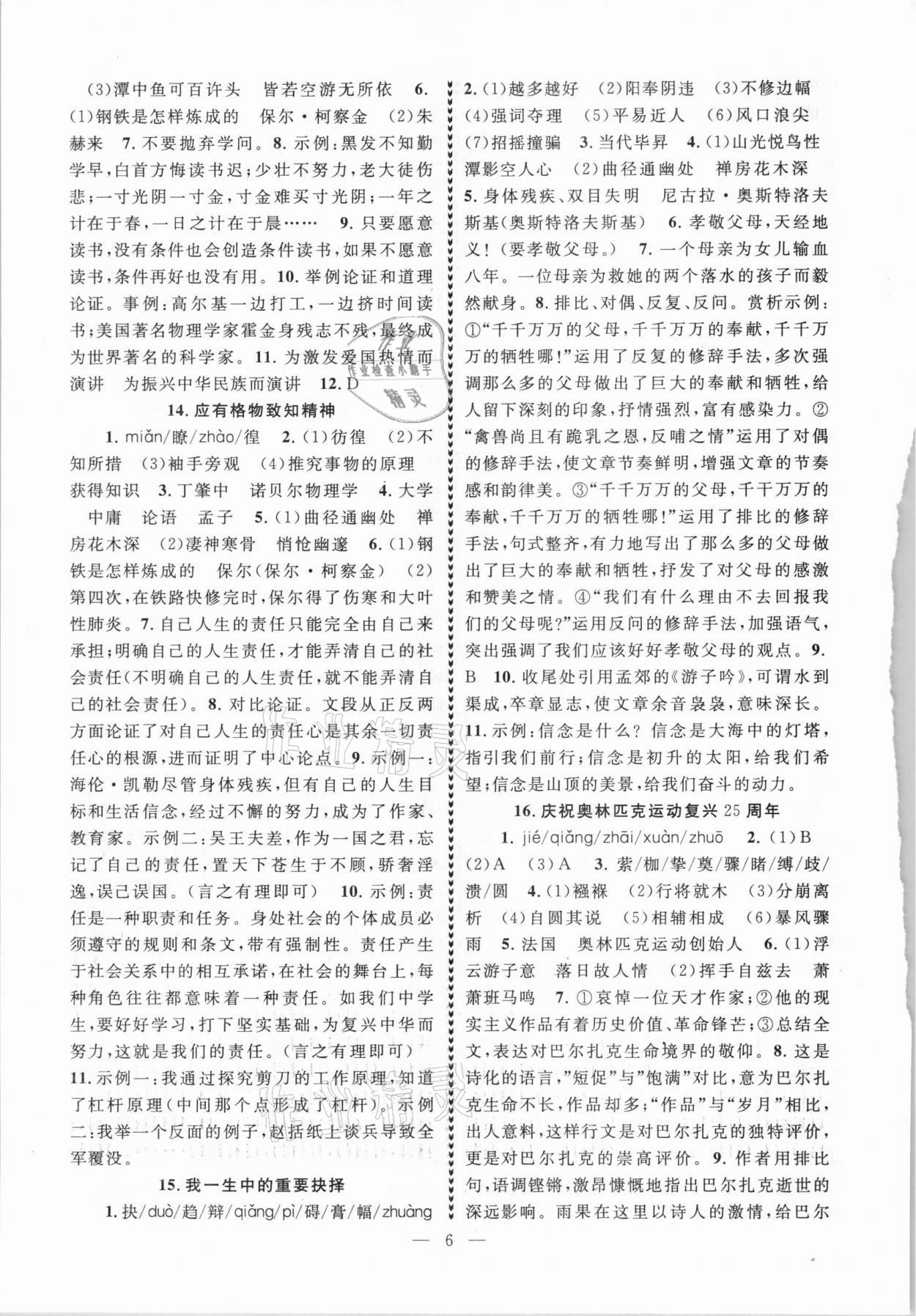 注:目前有些书本章节名称可能整理的还不是很完善,但都是按照顺序排列的,请同学们按照顺序仔细查找。练习册 2021年优学卷卷通八年级语文下册人教版 答案主要是用来给同学们做完题方便对答案用的,请勿直接抄袭。