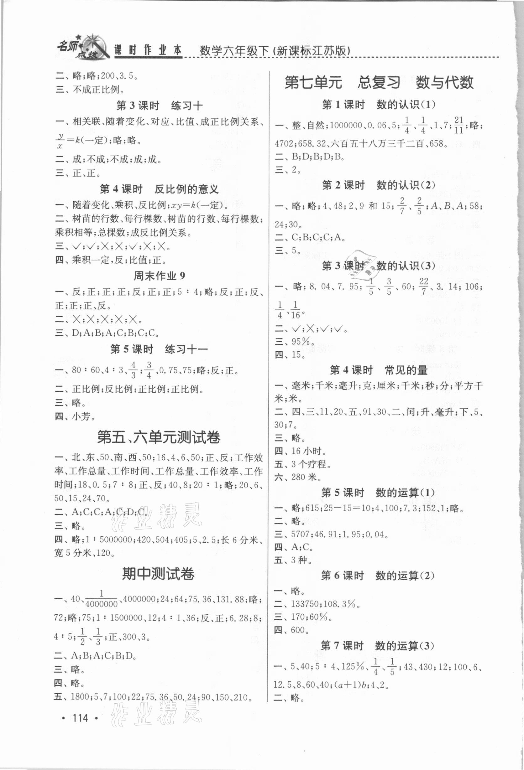 注:目前有些书本章节名称可能整理的还不是很完善,但都是按照顺序排列的,请同学们按照顺序仔细查找。练习册 2021年名师点拨课时作业本六年级数学下册江苏版 答案主要是用来给同学们做完题方便对答案用的,请勿直接抄袭。
