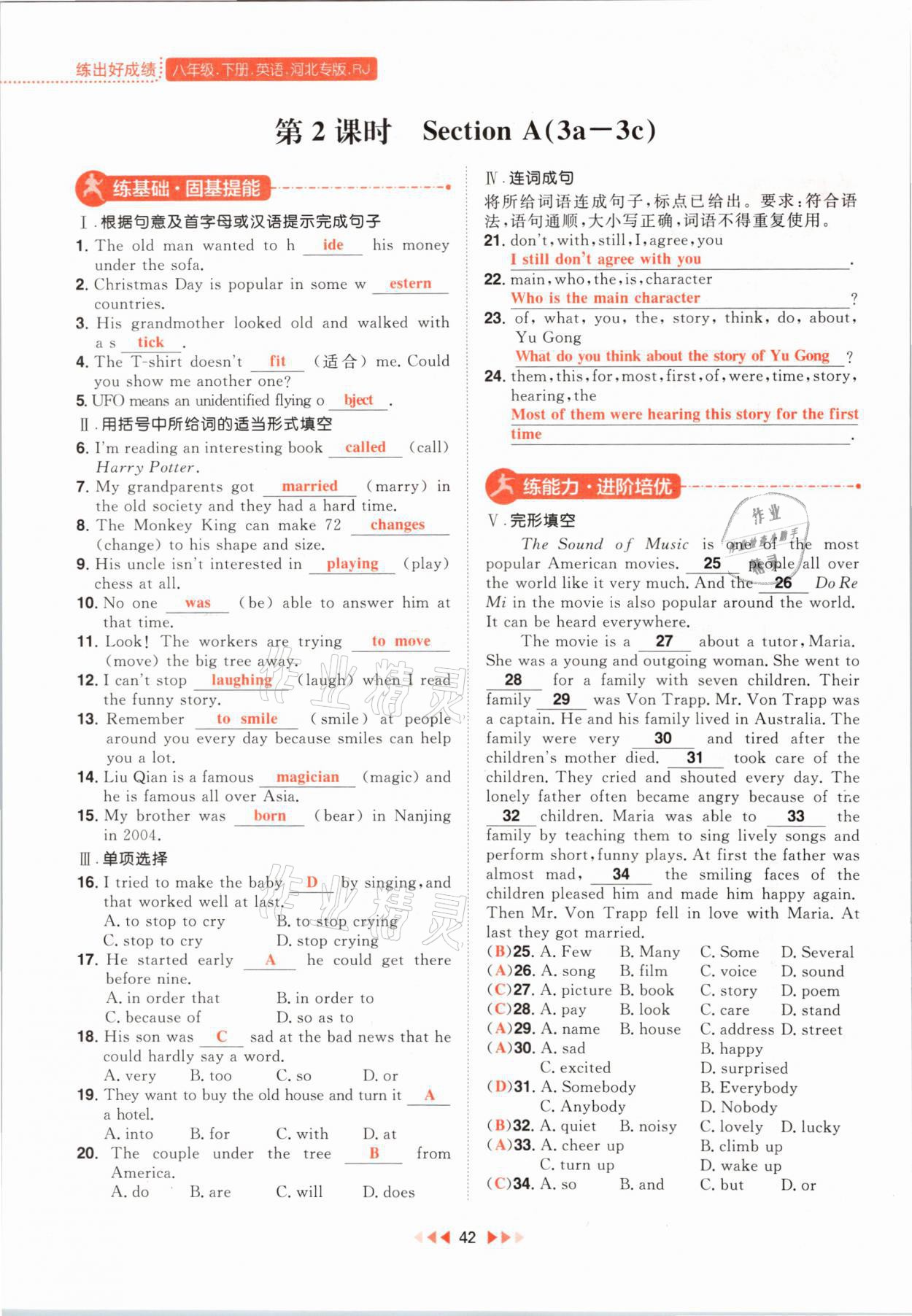注:目前有些书本章节名称可能整理的还不是很完善,但都是按照顺序排列的,请同学们按照顺序仔细查找。练习册 2021年练出好成绩八年级英语下册人教版河北专版 答案主要是用来给同学们做完题方便对答案用的,请勿直接抄袭。