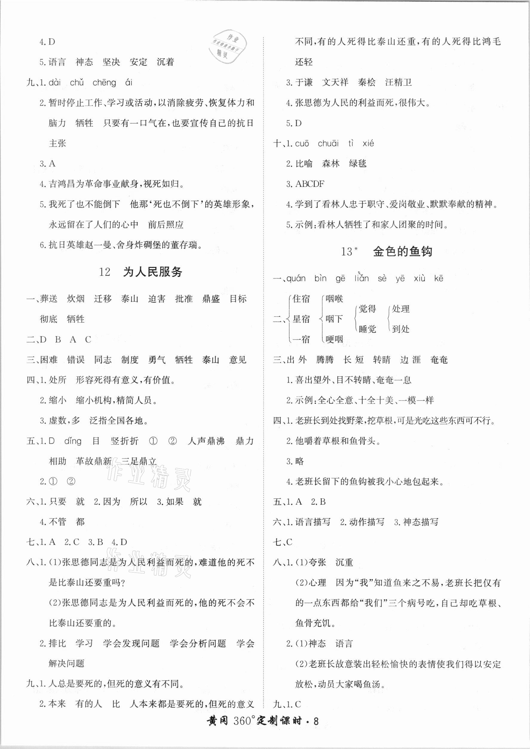 注:目前有些书本章节名称可能整理的还不是很完善,但都是按照顺序排列的,请同学们按照顺序仔细查找。练习册 2021年黄冈360定制课时六年级语文下册人教版湖南专版 答案主要是用来给同学们做完题方便对答案用的,请勿直接抄袭。