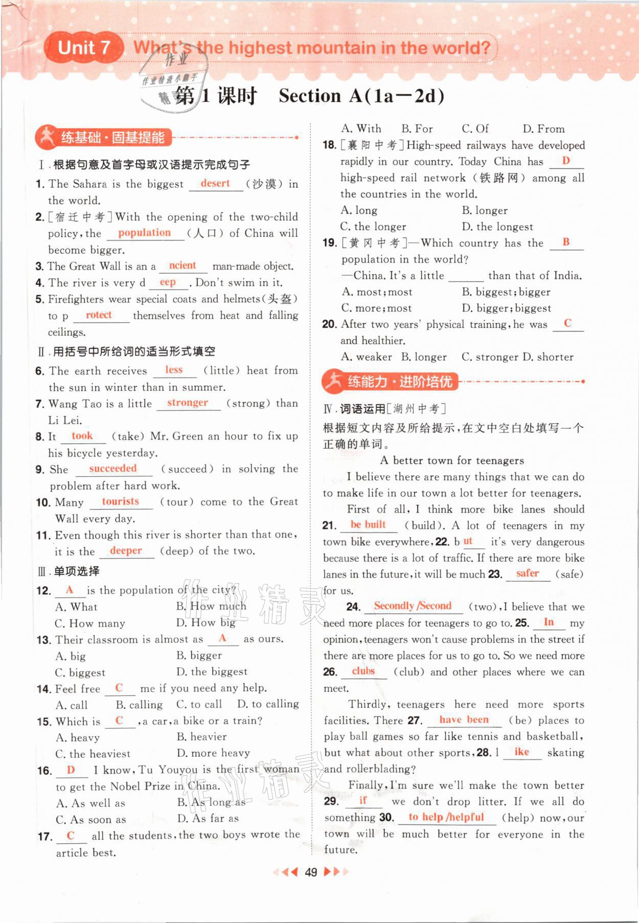 注:目前有些书本章节名称可能整理的还不是很完善,但都是按照顺序排列的,请同学们按照顺序仔细查找。练习册 2021年练出好成绩八年级英语下册人教版河北专版 答案主要是用来给同学们做完题方便对答案用的,请勿直接抄袭。