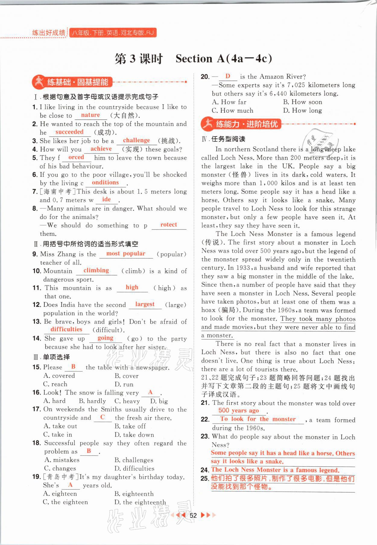 注:目前有些书本章节名称可能整理的还不是很完善,但都是按照顺序排列的,请同学们按照顺序仔细查找。练习册 2021年练出好成绩八年级英语下册人教版河北专版 答案主要是用来给同学们做完题方便对答案用的,请勿直接抄袭。