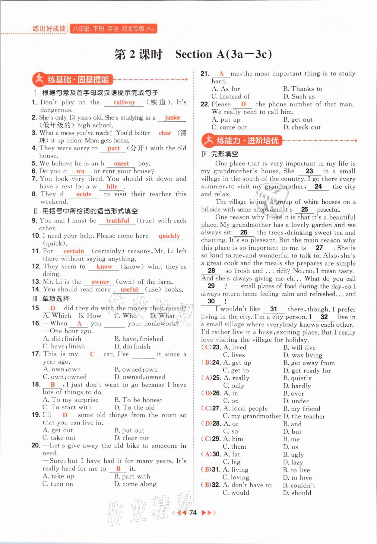注:目前有些书本章节名称可能整理的还不是很完善,但都是按照顺序排列的,请同学们按照顺序仔细查找。练习册 2021年练出好成绩八年级英语下册人教版河北专版 答案主要是用来给同学们做完题方便对答案用的,请勿直接抄袭。
