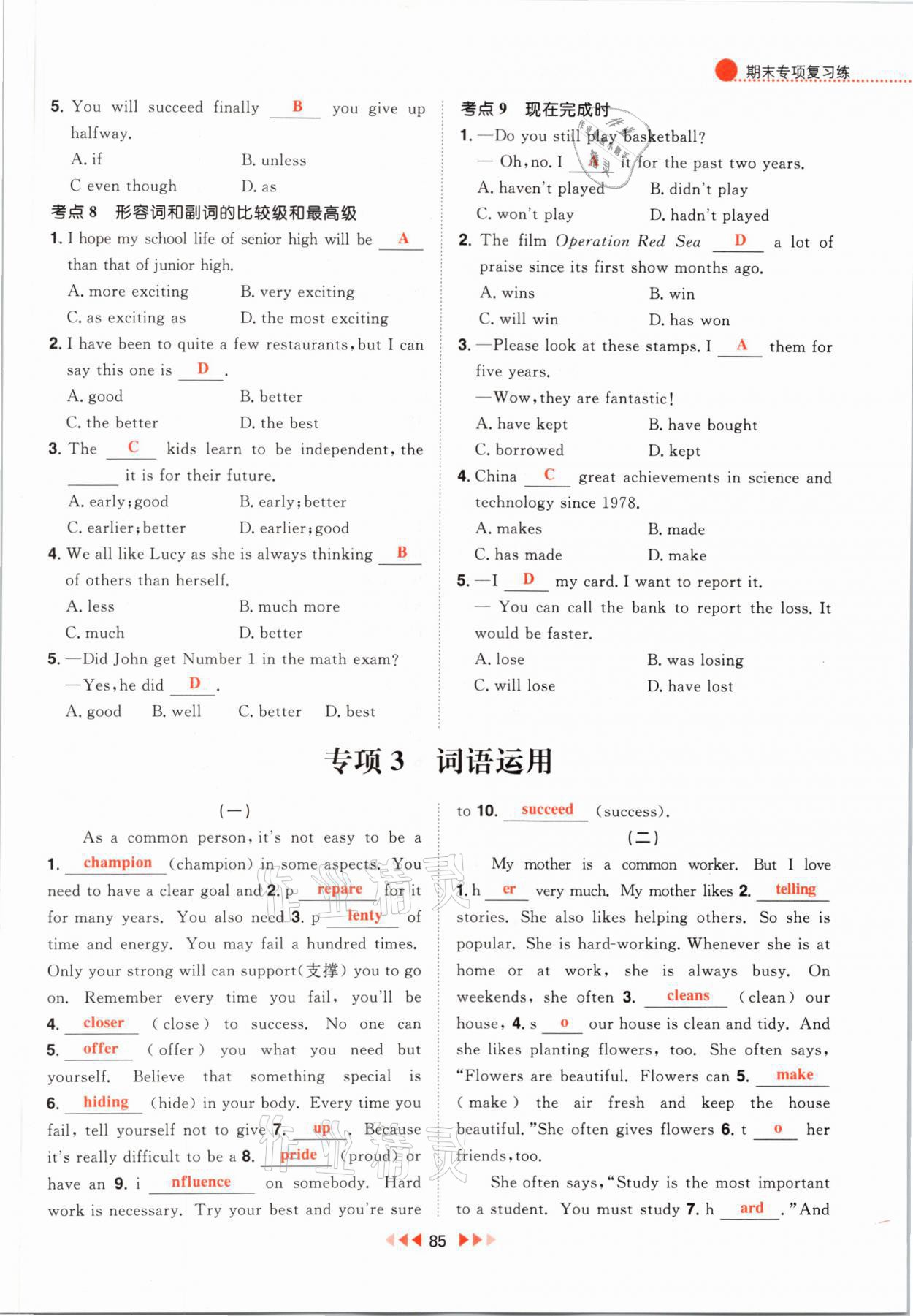 - 参考答案第85页