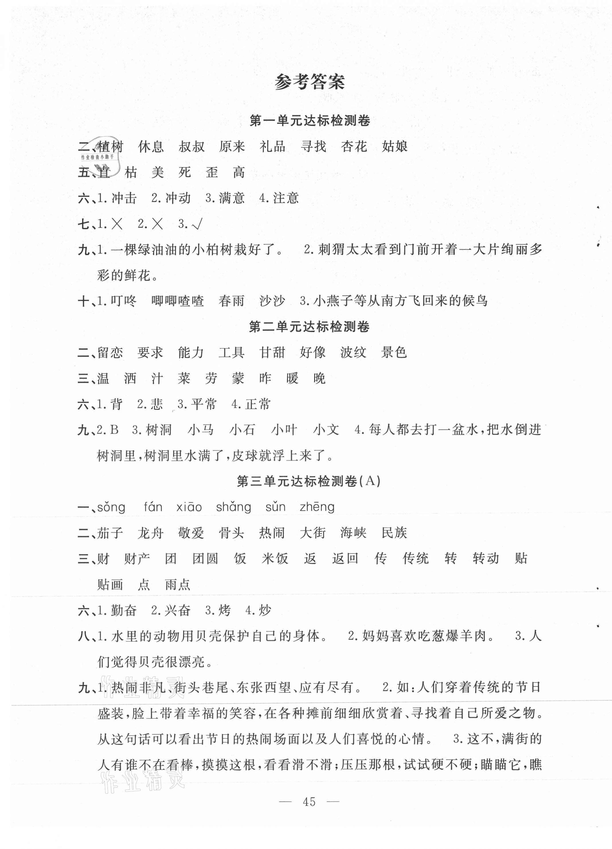 注:目前有些书本章节名称可能整理的还不是很完善,但都是按照顺序排列的,请同学们按照顺序仔细查找。练习册 2021年小学素质强化训练AB卷二年级语文下册通用版 答案主要是用来给同学们做完题方便对答案用的,请勿直接抄袭。