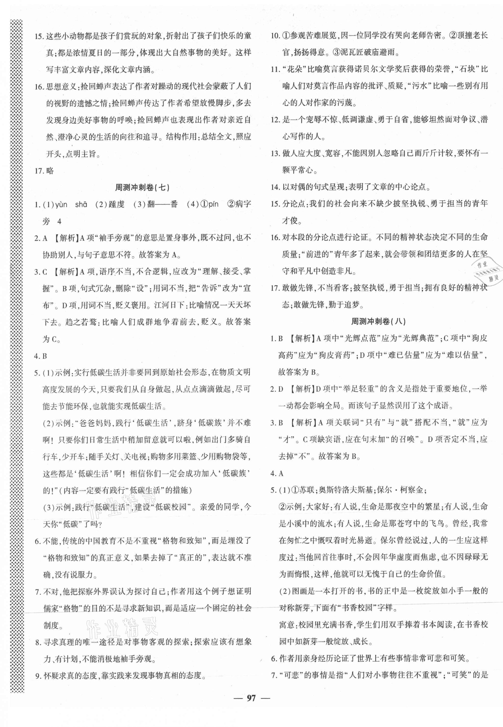 注:目前有些书本章节名称可能整理的还不是很完善,但都是按照顺序排列的,请同学们按照顺序仔细查找。练习册 2021年课堂达标测试八年级语文下册人教版 答案主要是用来给同学们做完题方便对答案用的,请勿直接抄袭。