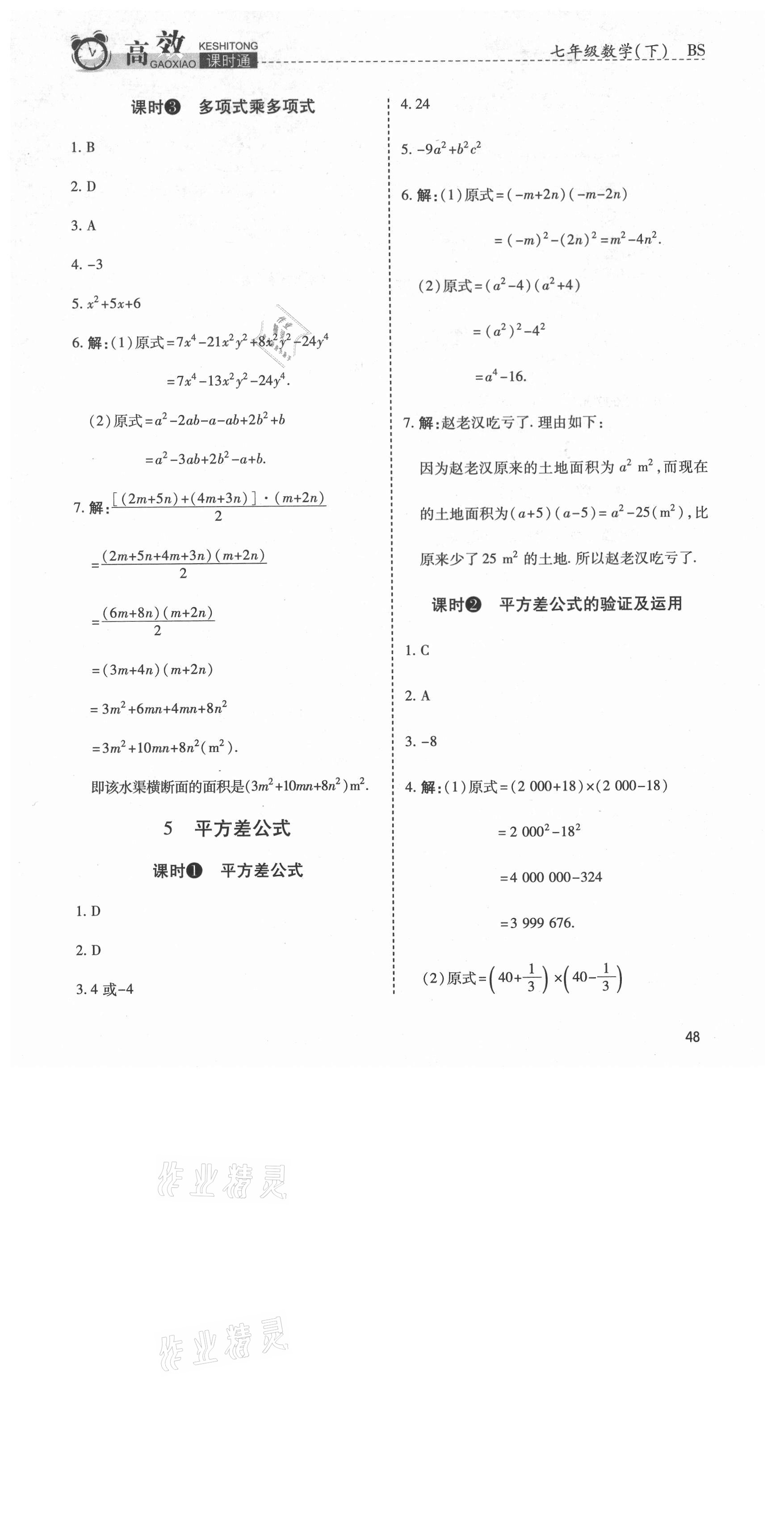注:目前有些书本章节名称可能整理的还不是很完善,但都是按照顺序排列的,请同学们按照顺序仔细查找。练习册 2021年高效课时通10分钟掌控课堂七年级数学下册北师大版 答案主要是用来给同学们做完题方便对答案用的,请勿直接抄袭。
