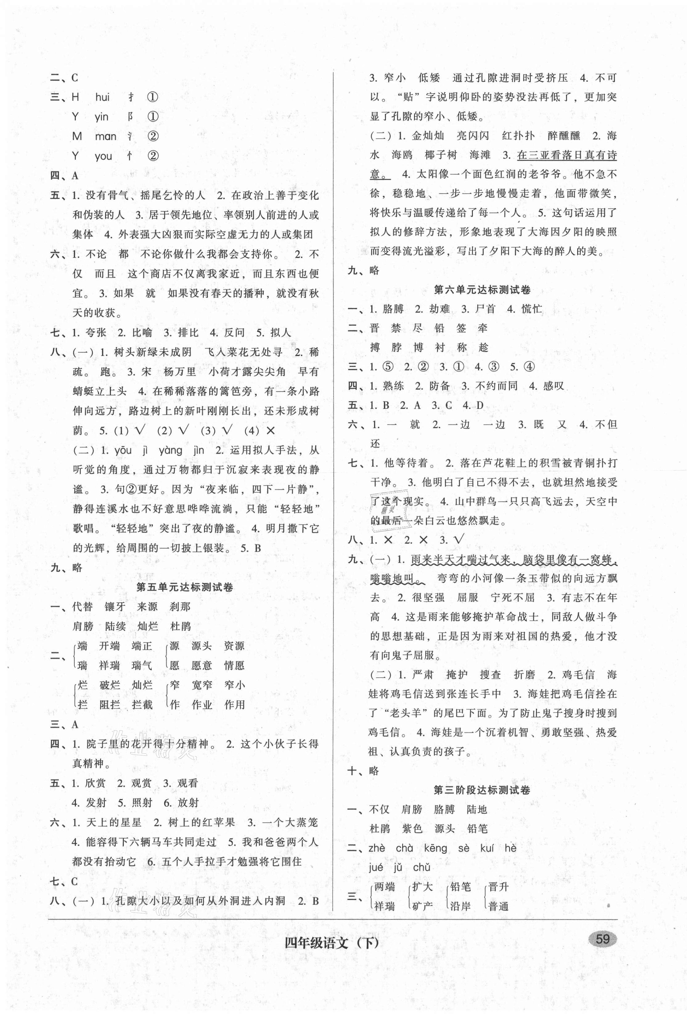 2021年第二课堂单元模拟试卷四年级语文下册人教版